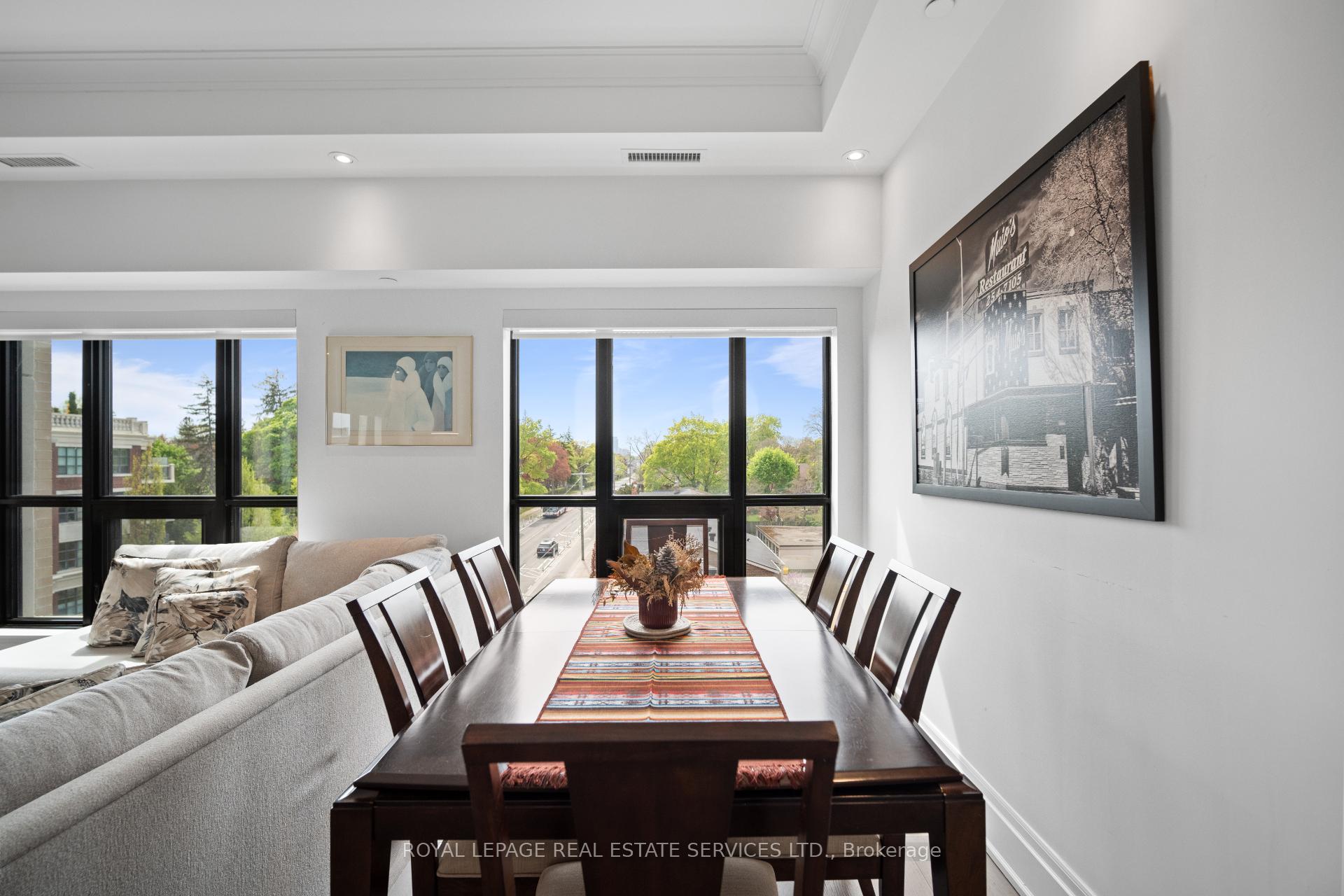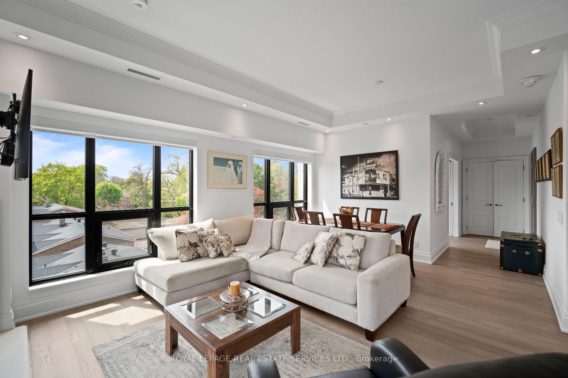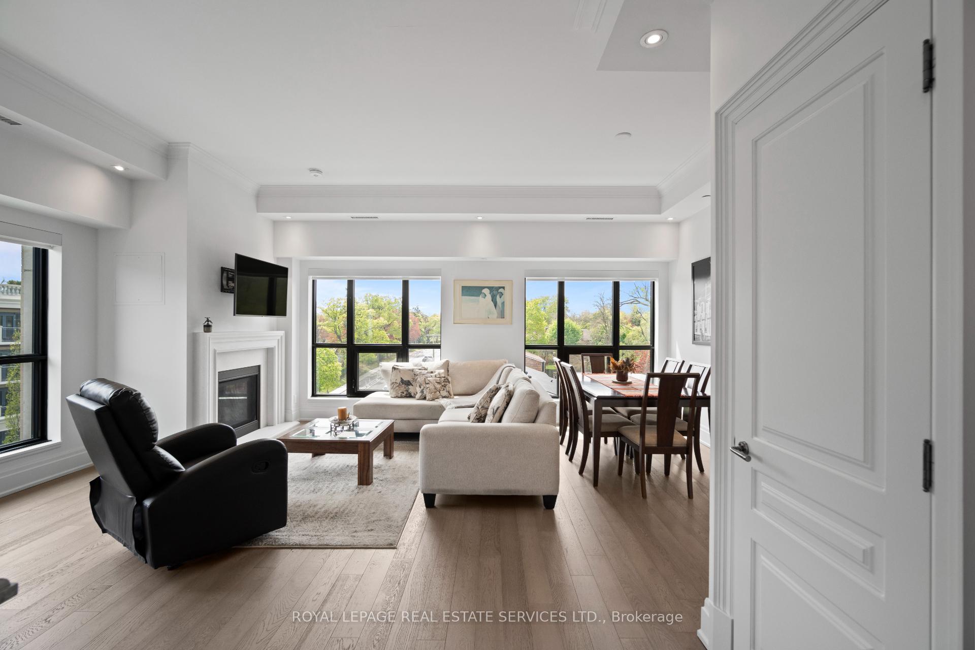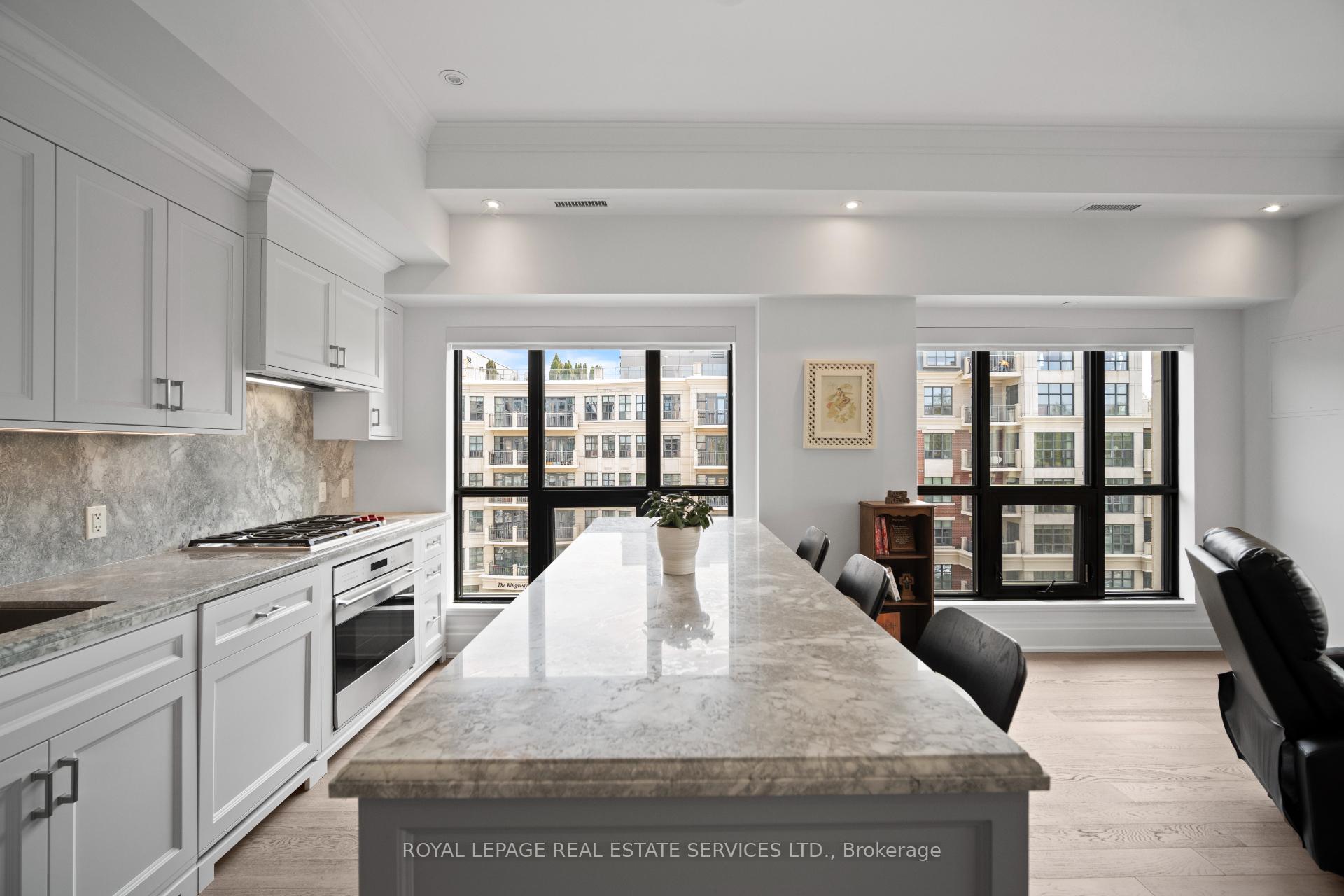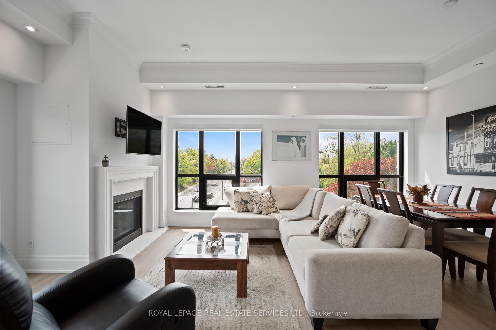 Welcome to an exclusive residence in the heart of prestigious The Kingsway. This boutique luxury building features just 34 suites and showcases timeless Beaux-Arts-inspired architecture by renowned architect Richard Wengle, with interiors by Brian Gluckstein. This rarely available corner suite offers approx 1, 327 sqft of light-filled, elegant living space with 2 bedrooms, 2 full baths, and high-end finishes throughout. The open-concept living/dining/kitchen is surrounded by oversized windows that flood the space with natural light. The chefs kitchen is designed to impress with Quartz counters and backsplash, a centre island, premium appliances, and ample storage. The living area features a cozy gas fireplace, crown moulding, and remote blinds throughout. The spacious primary suite offers his & hers closets (including a walk-in), a luxurious 5-piece ensuite, and a walk-out to the balcony. Second bed perfect for office/guest room with spacious closet. Full 3pc 2nd bath. Additional highlights include in-suite laundry, 1 parking, 1 locker, and top-tier amenities: concierge, gym, lounge, and a large 3rd floor outdoor terrace with dining and lounging space. Steps to Bloor Street, Subway, Kingsway & Bloor West Village, Humber River trails and more. This is refined living at its best!