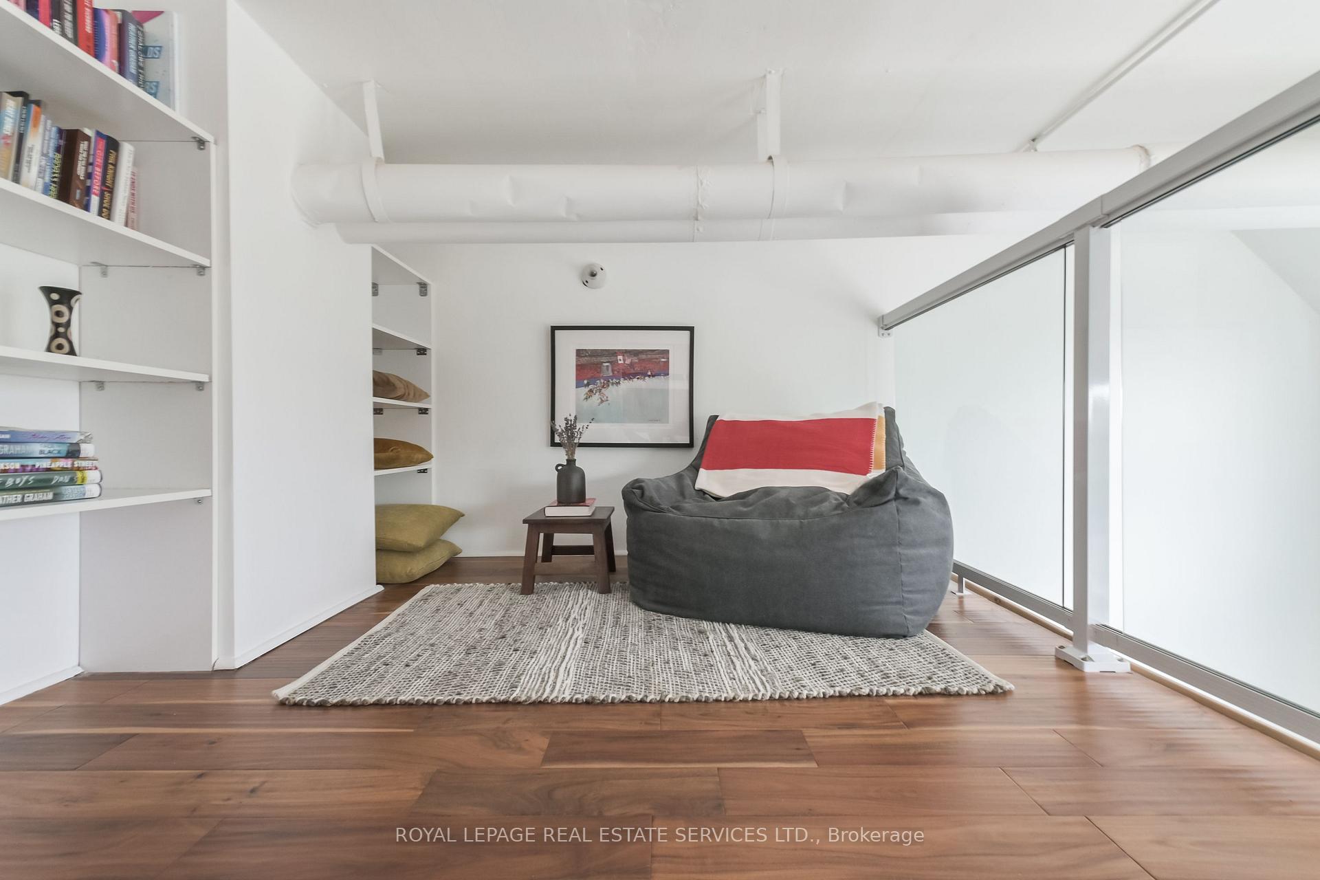 This reimagined 1930s Art Deco yarn factory, blends authentic, raw, industrial character with modern design. Think bold, stylish, one-of-a-kind, true industrial chic. Soaring 13 ceilings, exposed ductwork and oversized factory windows flood the space with light. Open concept living meets factory charm. A sleek modern kitchen with a standout copper sink and granite counters anchors the space, flowing into a generous, light filled living room with unique brick wall design. Perfect for entertaining. The cozy dining area features an incredible custom wine wall with ladder, a true showpiece. A second level versatile Bedroom, office or den offers privacy and the ideal work from home set-up. The unique mezzanine loft off the bedroom is perfect for yoga or a reading nook. Two bathrooms complete the space, one featuring vibrant San Miguel de Allende tiles. To cap it off, this unit owns a very private, expansive rooftop terrace with unobstructed views, electricity, water hook up & gas line for BBQ. Perfect for family gatherings or quiet relaxation. Amenities include a gym and attractive party room/work space. South of the Forest Hill Lofts is a 9 acre park and the Beltline Trail featuring walking, cycling and biking paths. Parking, abundant storage under stairs and locker plus ample visitor parking. Hydro incl. in maintenance fees