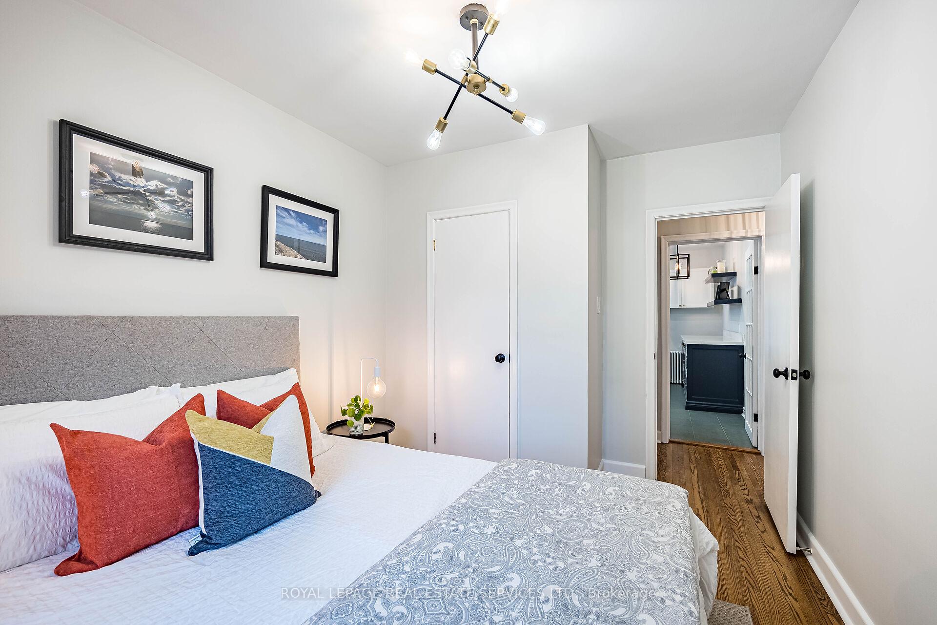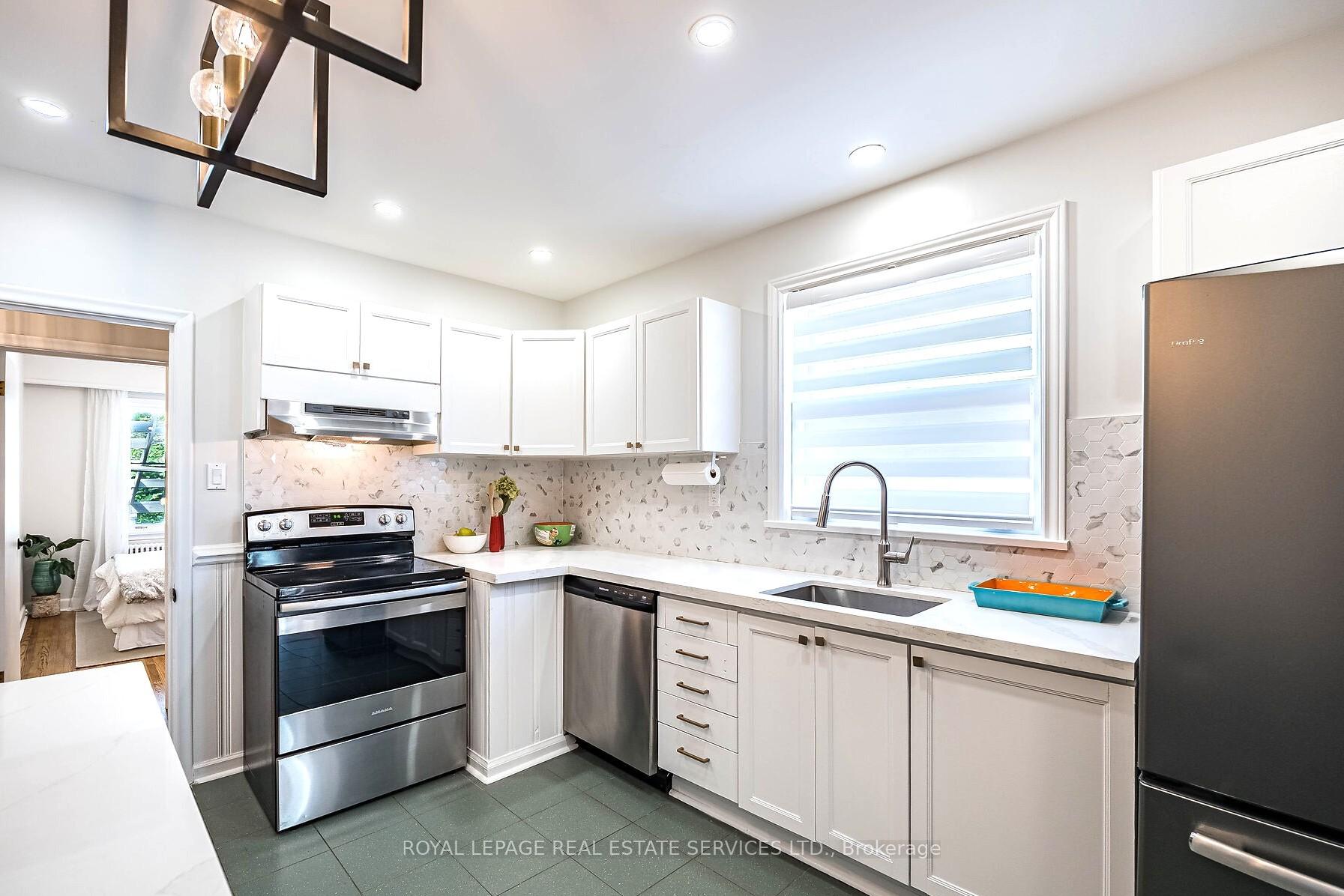 A simply-delightful family home with an unbeatable lakeside location and private drive! This large, beautifully updated bungalow features 3+1 beds, 2 baths and 1+1 kitchens. The basement offers high ceilings and income-earning potential. This raised bungalow enjoys 1, 876 sq ft of living space (per floor plans). Freshly painted in trendy off-whites by Benjamin Moore and featuring gleaming hardwood floors recently refinished in 'Special Walnut', this home blends modern comfort with classic charm. The bright living/dining room showcases a large picture window with views of the park, a rich 'Hale Navy' accent wall, and gleaming hardwood floors. The updated main floor kitchen is equipped with stainless steel appliances, white quartz counters, ample cabinetry, and a chic hex-tile backsplash. The queen-sized primary and second bedrooms overlook a sunny west-facing patio, while the third bedroom provides flexibility as a bedroom, home office or the expansion of the main living space. Updated 4-piece bath with oversized tile, a deep tub, and elegant vanity. The lower-level features an in-law suite (rental potential $$$) with a bright living space, cute kitchen, 4-piece bath, and large bedroom with a huge picture window - plus high ceilings, separate entrance and laundry/utility room. The backyard is fully fenced and features a lush green lawn, 2 storage sheds and gorgeous lilac tree. You will love the patio vibes; complete with an open gazebo, decorative lights, gorgeous patio set and natural gas BBQ - perfect for entertaining family and friends with sunny summer BBQs! This location can't be beat! Ideally located in the highly-sought-after lakeside community of New Toronto. Just steps to the Lake, Waterfront Trail, Rotary Peace Park and Sam Smith Park. Easy walk to transit, schools, pools & Humber College. And, it's just a short commute downtown. Dreaming of living near the lake? Dream no longer! Now you too can enjoy the excitement of Life-by-the-Lake!