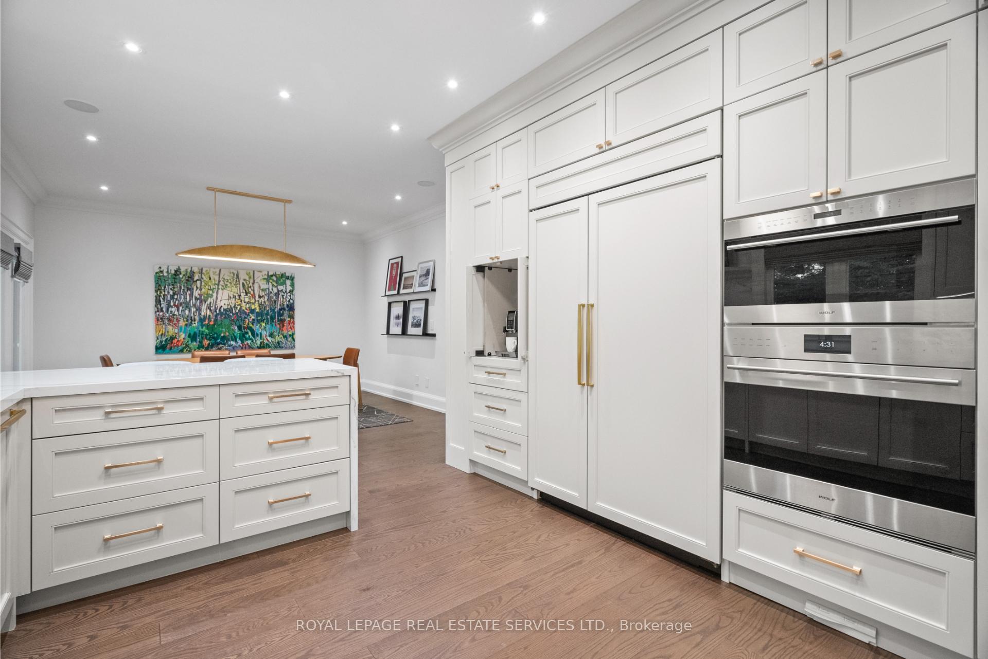 Welcome to 132 Strath Avenue in The Kingsway - Set on one of the neighbourhoods most prestigious streets, this custom-built residence combines timeless elegance with modern renovations for the ultimate family home. Thoughtfully updated throughout, it offers over 4, 000 sqft of luxurious living space designed for both comfort and entertaining. The main floor greets you with a grand foyer featuring classic wainscotting, setting the tone for the homes refined style. A stunning new kitchen is the heart of the home, complete with Quartz counters, breakfast bar, Sub-Zero, Wolf, and Miele appliances, plus a clever built-in pot filler in the dog nook. The open concept kitchen flows seamlessly into the family/dining room with walk-out to the backyard. Formal living and dining/family rooms, a spacious home office, a gorgeous new powder room, and a custom mudroom with abundant storage and direct garage access complete this level. Upstairs, 4 spacious bedrooms include a private primary retreat with a walk-in closet, 6pc ensuite with double showers, and a Juliette balcony. A 2nd bedroom enjoys its own ensuite, while the 3rd and 4th share a stylish Jack & Jill bath - ideal for growing families. The fully finished lower level expands the living space with a versatile rec room, state-of-the-art laundry, gym/5th bedroom, and an epic den with wet bar - the perfect man cave or teen hangout. A walk-up provides direct access to the backyard. Outside, a low-maintenance yard with patio and turf offers both space to entertain and room for kids to play. Located just steps to LKS, and within walking distance of Bloor Streets boutiques, cafes, dining, and the subway - this is the quintessential Kingsway lifestyle.
