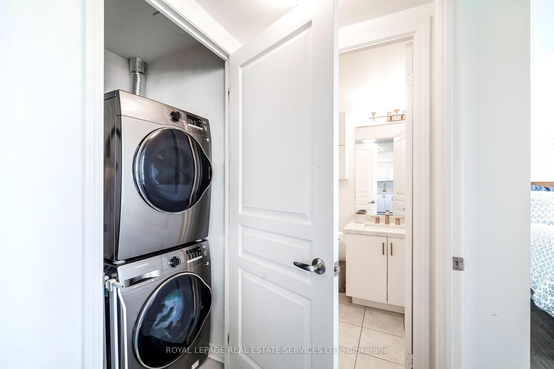 Suite 1105 is a stunning, sun-filled spacious condominium residence, with approximately 652 square feet of living space, 1-bedroom, plus a den, a sprawling private terrace, and breathtaking views of nature, Lake Ontario, and Mimico Creek. Enjoy an updated chef's kitchen, with quartz counter tops, large breakfast bar, full sized new stainless steel appliances, and sleek hardwood floors throughout. Efficient layout allows for a sizeable dining room table, perfect for entertaining friends and family. The suite also boasts 9 foot ceilings, a true den, excellent for a work from home office or for a cozy, adorable nursery. Minutes from Mimico Go Train Station, commuter highways, St.Joseph's hospital, and the downtown TO Core. Located only steps to the Humber Bay Trail + nature paths/trails, the lake, marina, restaurants, cafes, patios, and shops. Beyond The Sea features many resort style amenities, including 24 hour concierge services, a health club, with a yoga room, a boxing room, an indoor pool, sauna, 3 party rooms, a recreation room, kids play room, wine tasting room, and a grand theatre. 1 prime parking spot (next to entrance) and 1 locker included.
