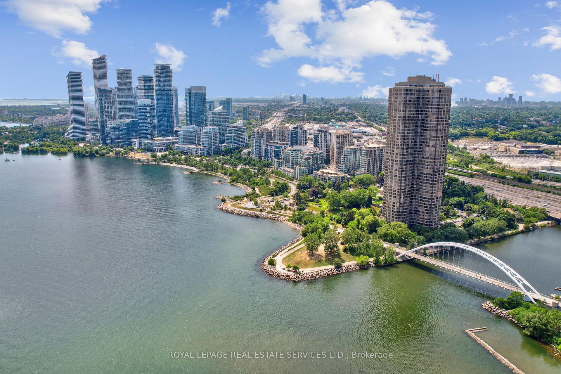 Welcome to an extraordinary lakefront lifestyle at The Explorer, one of Toronto's most prestigious waterfront residences in sought-after Humber Bay Shores. This expansive suite features over 1, 600 square feet of refined living space, where every window frames breathtaking panoramic views of the city skyline and Lake Ontario. Designed with both elegance and function in mind, the split-bedroom layout offers ideal privacy, with bedrooms positioned at opposite ends of the suite. The open-concept living, dining, and kitchen areas provide the perfect setting for entertaining or unwinding against the backdrop of shimmering waters and breathtaking sunrises. A centrally located den offers incredible versatility, ideal as a third bedroom, spacious home office, or quiet retreat. Tastefully updated with modern fixtures and premium finishes, this residence blends timeless design with contemporary flair. Every detail speaks to quality and comfort. Residents enjoy hotel-inspired amenities, including full concierge services, an indoor pool, a state-of-the-art fitness centre, guest suites, a business centre, a party room, and more, surrounded by impeccably manicured grounds and the vibrant waterfront community. Step outside to explore scenic trails, cafes, parks, shopping, restaurants, public transportation, and nearby marinas. Life truly is better by the lake.