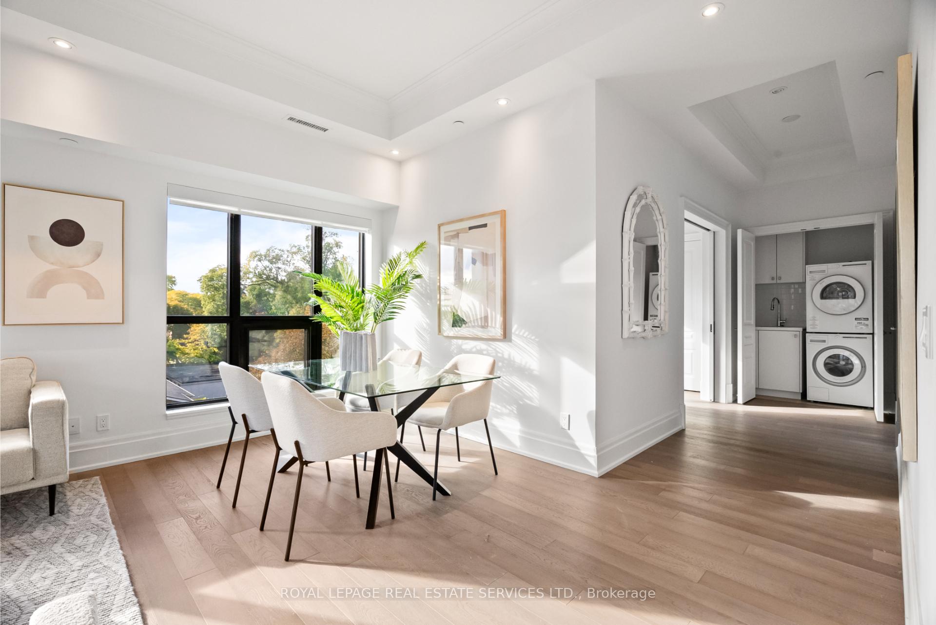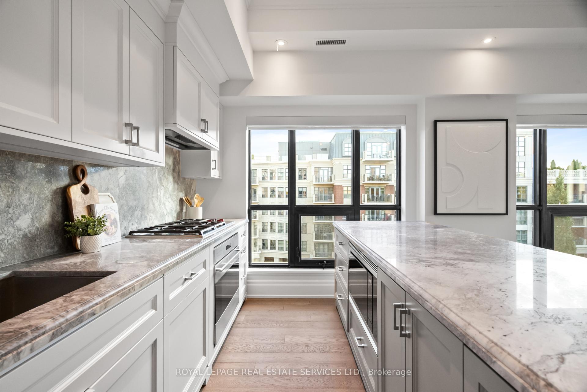 Welcome to an exclusive residence in the heart of prestigious The Kingsway. This boutique luxury building features just 34 suites and showcases timeless Beaux-Arts-inspired architecture by renowned architect Richard Wengle, with interiors by Brian Gluckstein. This rarely available corner suite offers approx 1, 327 sqft of light-filled, elegant living space with 2 bedrooms, 2 full baths, and high-end finishes throughout. The open-concept living/dining/kitchen is surrounded by oversized windows that flood the space with natural light. The chefs kitchen is designed to impress with Quartz counters and backsplash, a centre island, premium appliances, and ample storage. The living area features a cozy gas fireplace, crown moulding, and remote blinds throughout. The spacious primary suite offers his & hers closets (including a walk-in), a luxurious 5-piece ensuite, and a walk-out to the balcony. Second bed perfect for office/guest room with spacious closet. Full 3pc 2nd bath. Additional highlights include in-suite laundry, 1 parking, 1 locker, and top-tier amenities: concierge, gym, lounge, and a large 3rd floor outdoor terrace with dining and lounging space. Steps to Bloor Street, Subway, Kingsway & Bloor West Village, Humber River trails and more. This is refined living at its best!