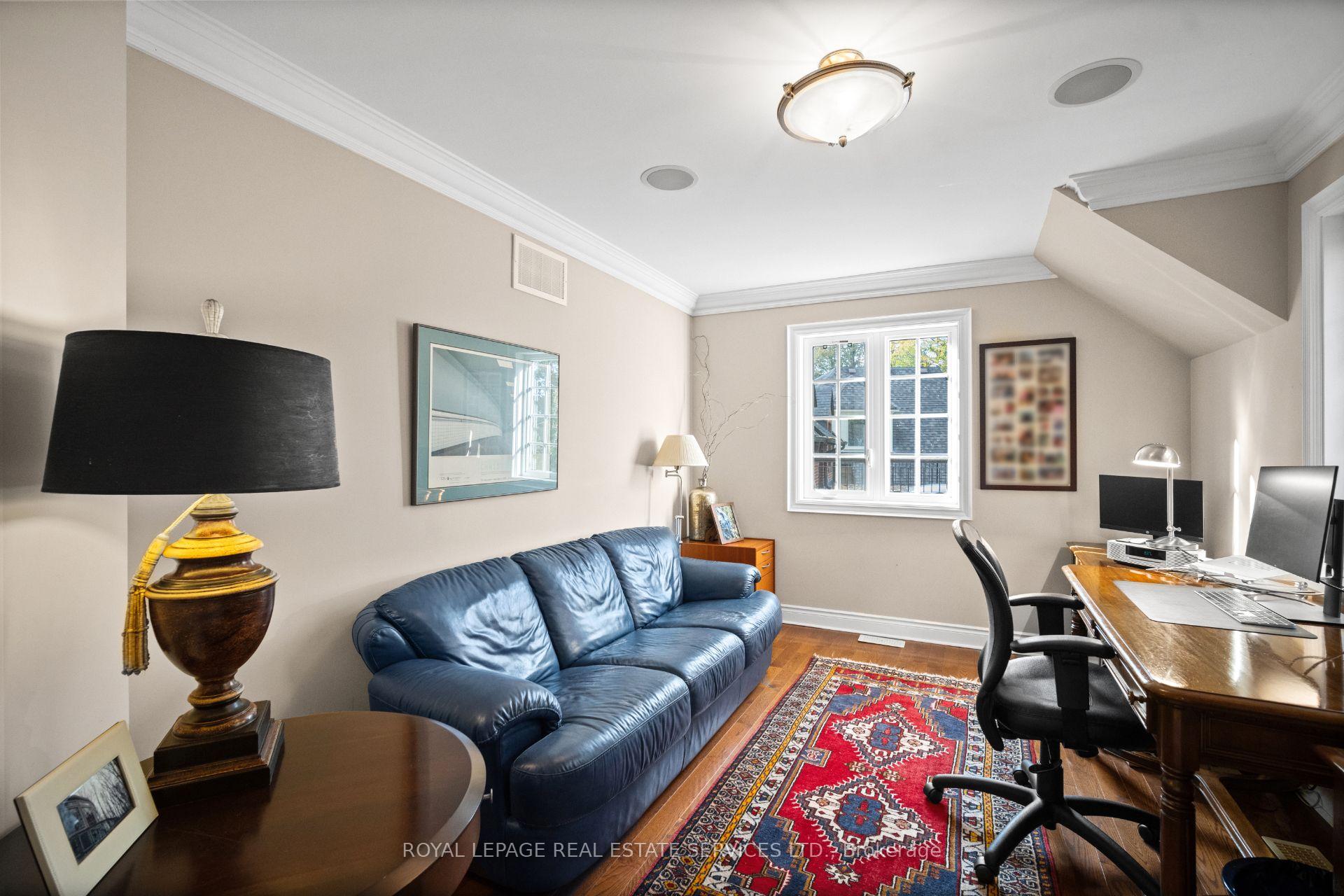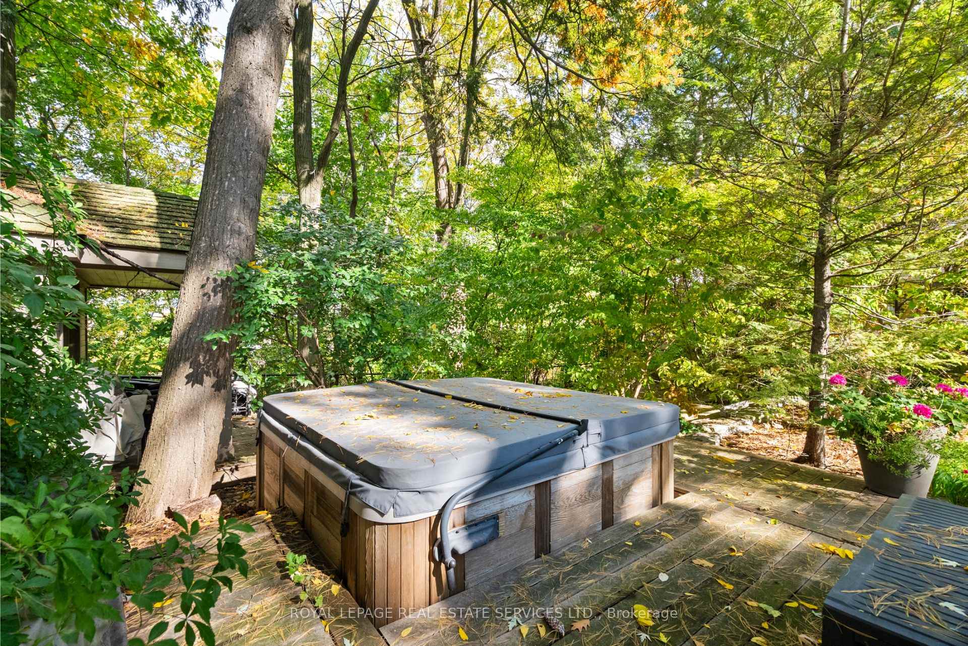 Welcome to this stunning 2-storey residence in the heart of Humber Valley Village, perfectly positioned on a quiet, family friendly street and offering ultimate privacy with its treed lot backing onto church. Completely move in ready, this home combines thoughtful design, quality craftsmanship, and modern upgrades throughout. Step inside and be wowed by the open concept main floor (renovated in 2017), featuring a seamless flow between the living, dining, and kitchen areas - ideal for both everyday living and entertaining. The chef's kitchen impresses with high end JennAir appliances, Quartz counters, a large centre island with a custom walnut dining extension, and walk-in pantry. The living room boasts a gas fireplace, while the cozy family room at the rear overlooks the serene backyard and features a wood-burning fireplace. Plus mudroom with garage access, main floor laundry, and powder room complete this level. Upstairs, you'll find 5 spacious bedrooms, including a peaceful primary suite with a walk-out balcony surrounded by treetops, a walk-in closet, and a luxurious 5pc ensuite. Bedroom 2 features its own 4pc ensuite, while bedrooms 3 & 4 share a semi-ensuite bath - plus a versatile 5th bedroom perfect for a home office or lounge. The renovated lower level offers even more living space, with a bright rec/games room, gas fireplace with built-ins, wine cellar, gym, an additional bedroom with a 3pc semi-ensuite and steam shower, and generous storage rooms. Outside, enjoy a private backyard oasis complete with multiple lounging areas, a hot tub, and a storage shed. Major updates include a new roof (2023) and furnace/AC (2022) + emergency generator - all you need to do is move in and enjoy! Located in the coveted Humber Valley Village community, close to top-rated schools, parks, shopping, highways, and downtown Toronto - this home truly has it all!