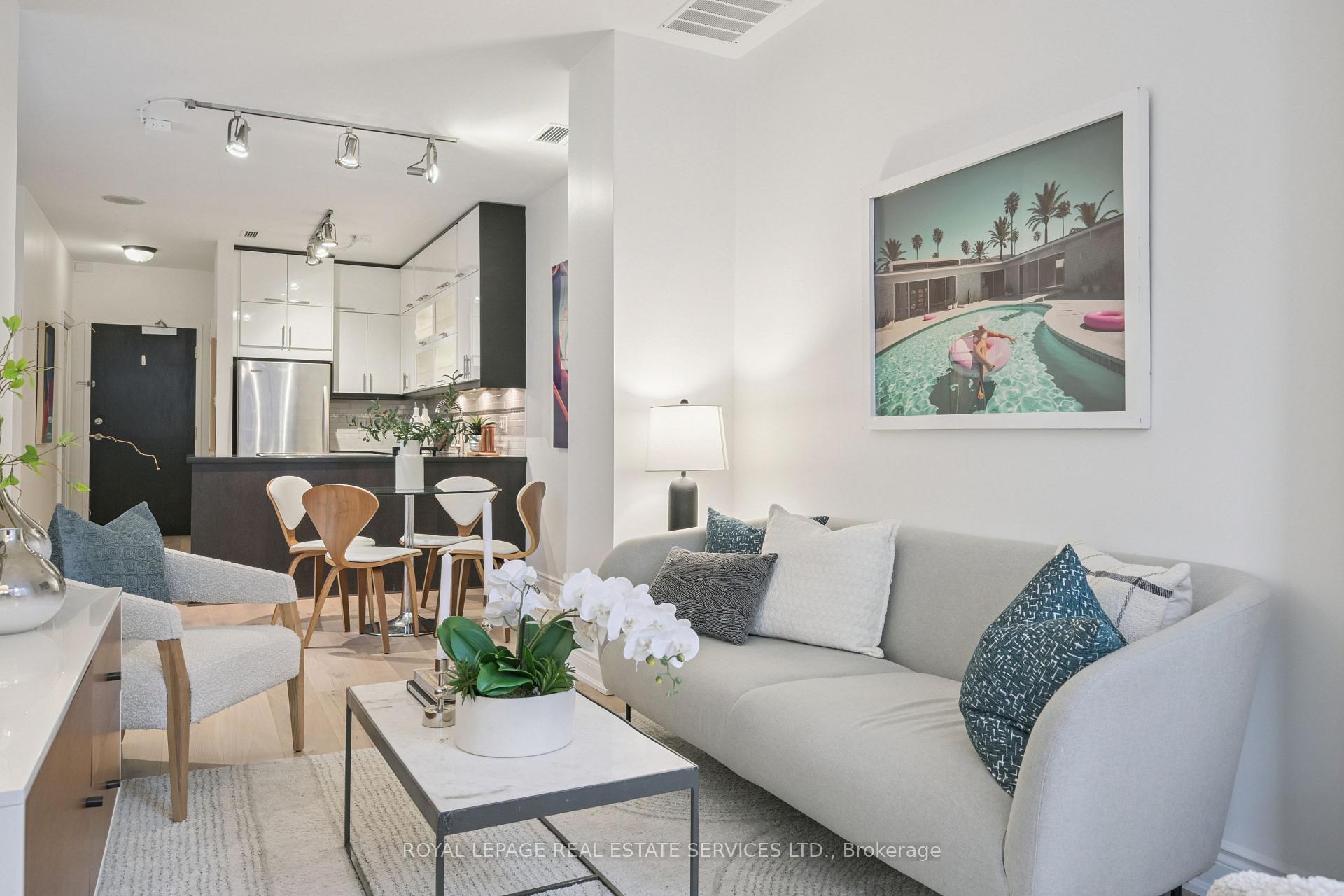 Urban sophistication meets boutique living at 393 King Street West. Nestled in the heart of Toronto's vibrant Entertainment District, this fully reimagined 1 Bedroom + Full-Size Den residence delivers style, comfort, and an unparalleled downtown lifestyle. Inside, the suite has been thoughtfully transformed with brand-new engineered flooring, a hotel-chic-inspired bathroom, and an updated modern kitchen featuring sleek stacked cabinetry, a peninsula with a full-size range, and clean, contemporary finishes. The generous full-size den-complete with a door-offers true versatility as a home office, guest room, or private creative space. Wake up each morning to iconic views of the CN Tower, and step outside to endless convenience. From world-class dining and entertainment to cultural landmarks, theatres, sports venues, and the TTC at your doorstep, this location offers the best of Toronto living at your fingertips. Located within a well-established 12-storey boutique mid-rise, The 393 on King blends style with security and comfort. Known for its rouge-tinted windows and inviting brick podium, the building offers thoughtful amenities including a fitness centre, billiards lounge, and a rooftop deck perfect for unwinding after a busy day. Whether you're seeking a stylish urban retreat or a smart investment in one of Toronto's most exciting neighbourhoods, this beautifully updated suite at 393 King Street West is the perfect place to call home.
