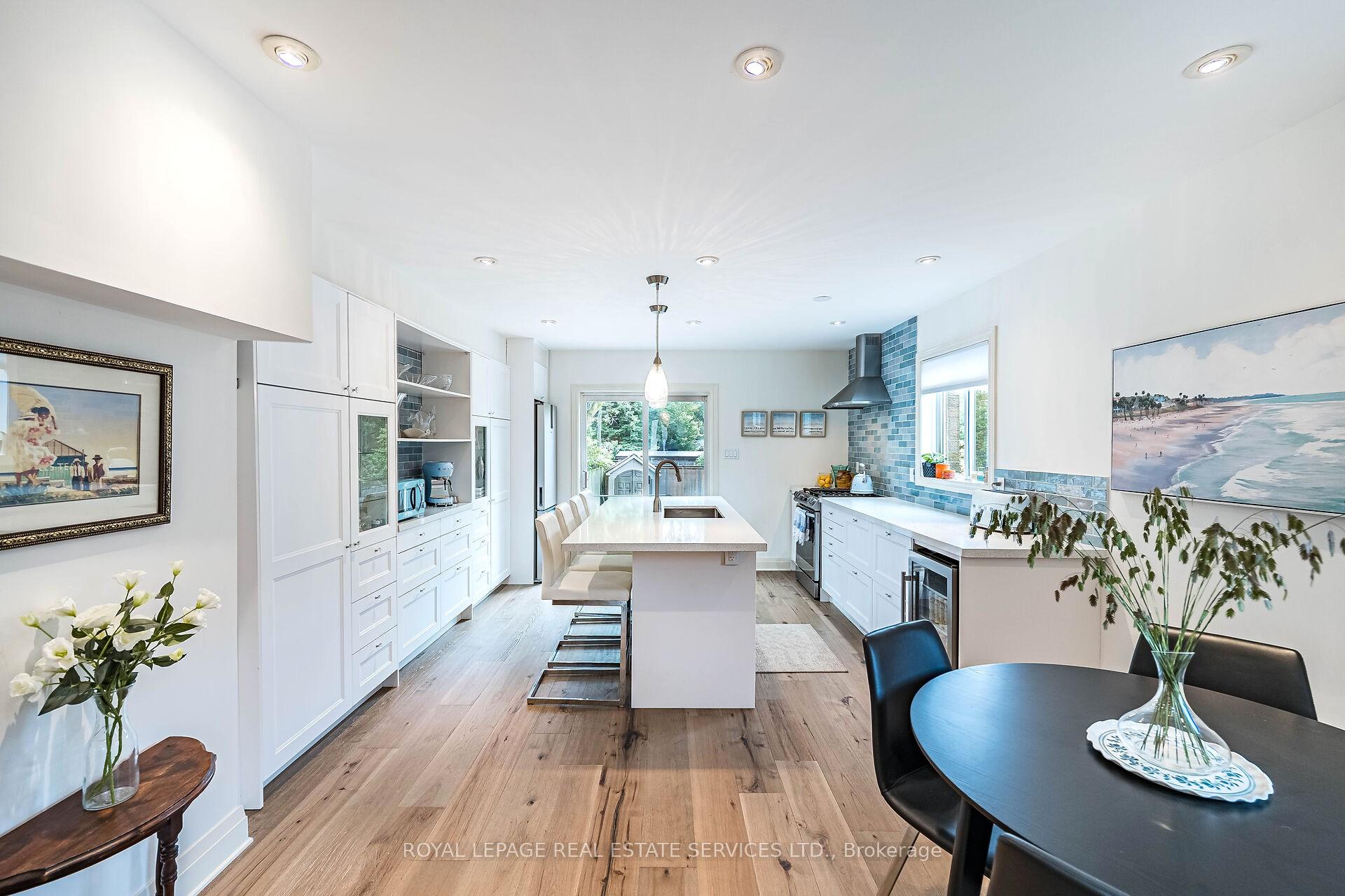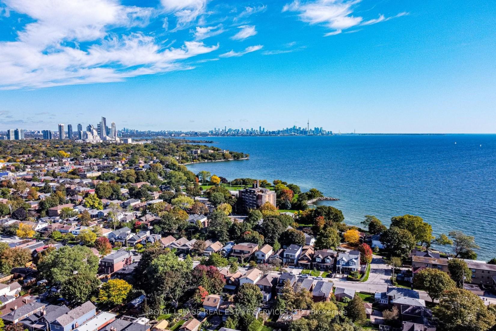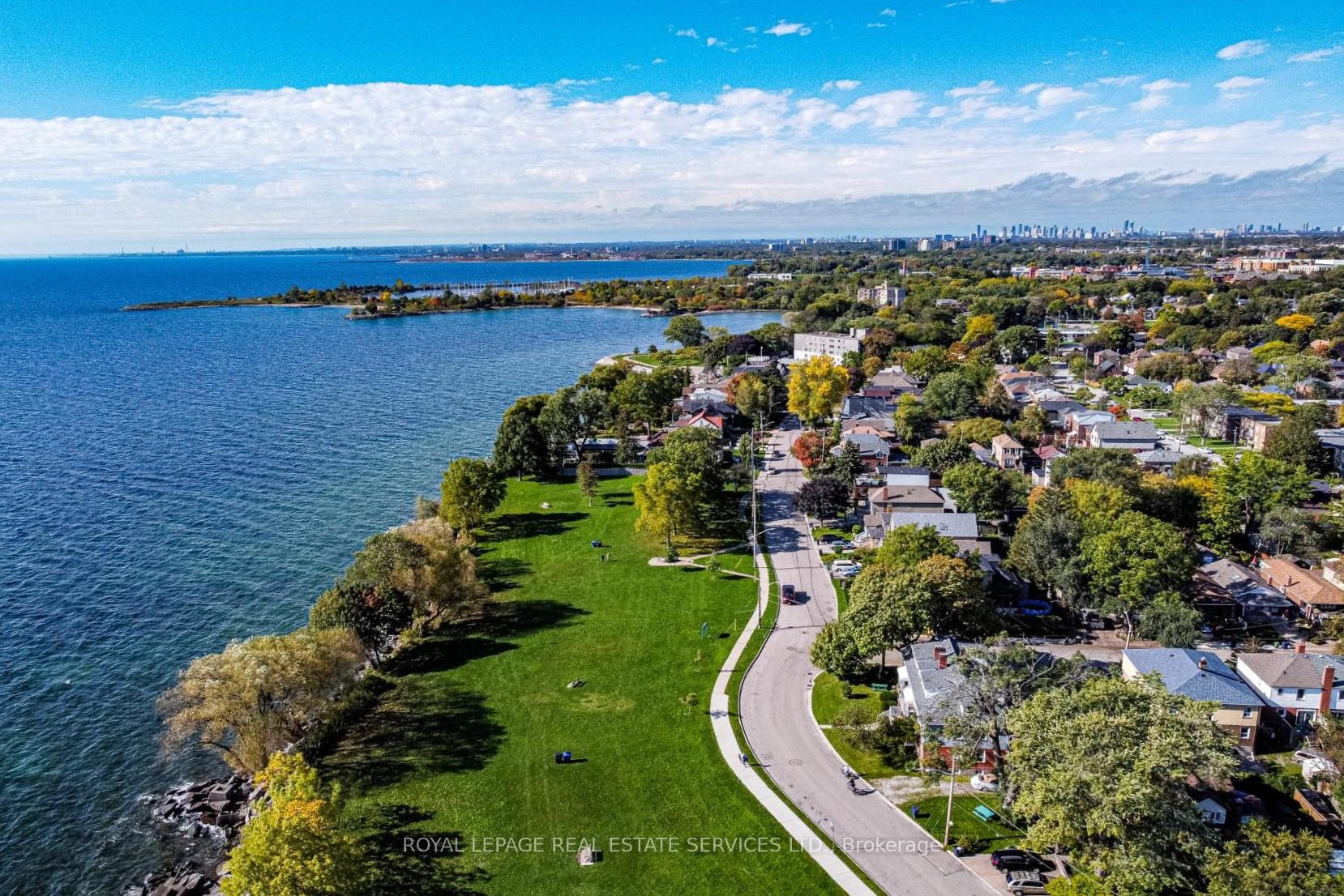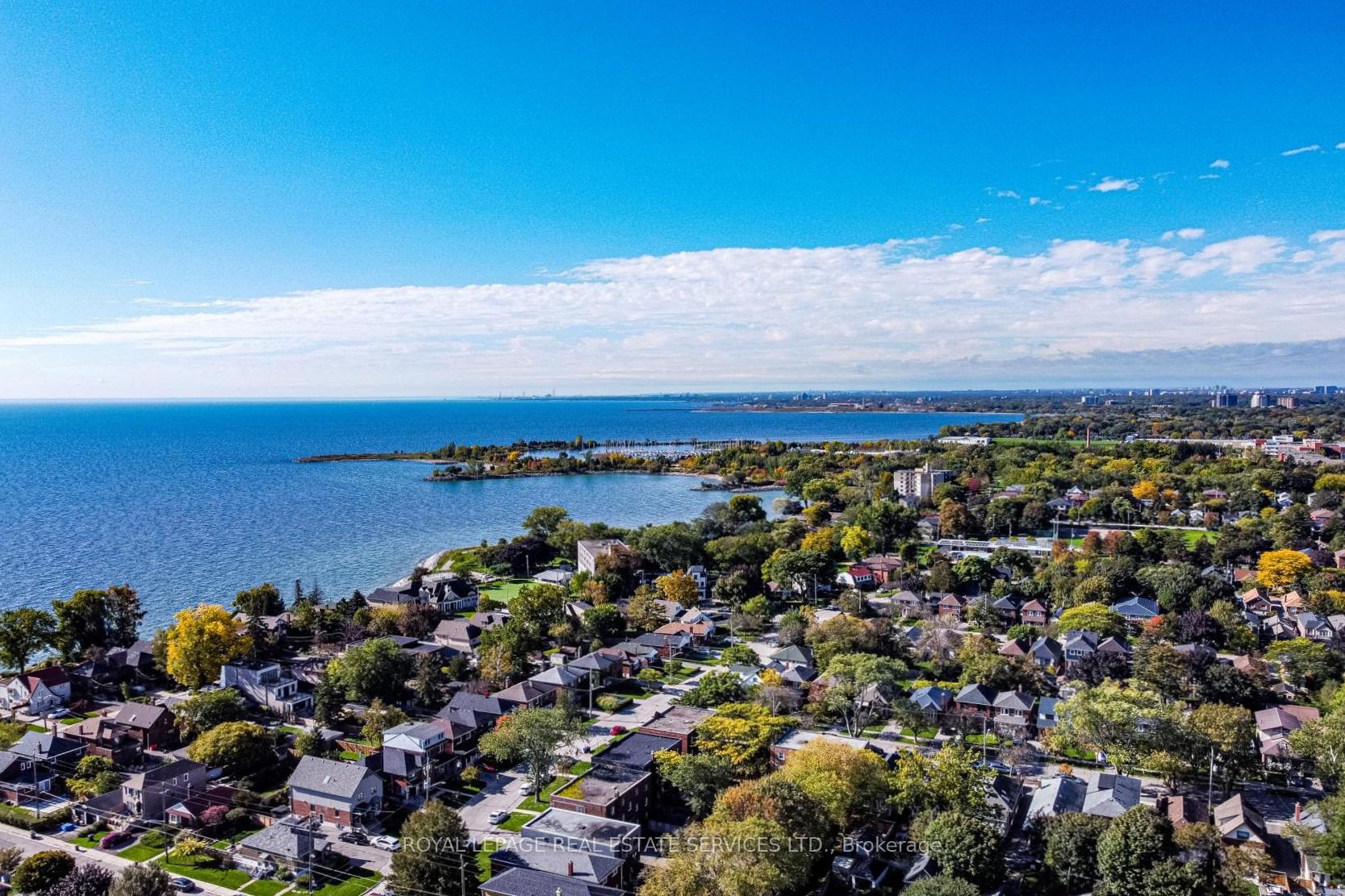 Just steps to the Lake - this simply delightful, recently renovated home offers turn-key living, stylish updates & modern decor! This captivating, 3-bedroom, 2-bathroom home is literally a stone's throw from the Lake; it is the 1st house from Lake Shore Dr, the Waterfront Trail, and lakeside Cliff Lumsden Park with spectacular sunrises and panoramic views of Toronto's skyline. Imagine the joy of walking the dog, feeding the ducks, skipping pebbles and seeing sailboats coasting by while strolling, cycling or jogging along the Waterfront Trail! The open-concept main floor was renovated in 2022 and is a bright, open-concept living space that is perfect for everyday family living and entertaining alike. The gorgeous, well-appointed chef's kitchen offers an abundance of timeless shaker-style cabinets, loads of counter space, a large island complete with a wine fridge and a walk-out to a sunny, west-facing backyard with an impressive, 2-level deck and Jacuzzi hot tub. It is a perfect place for BBQing with family and friends! The 2nd floor is freshly painted in Cloud White by Benjamin Moore and enjoys 3 comfortable bedrooms, including a 'King-sized' primary bedroom with wall-to-wall closets. The exquisite 5-piece bathroom offers a separate bathtub, shower and double sinks. The lower level was refreshed in 2024 and enjoys a fitness area with laundry closet, a cozy rec room, a home office nook, a 4-piece bath, a utility room and storage. Best of all, the basement has soaring 8-foot ceilings. Additional updates also include front yard hardscaping with inlaid pavers ('24); resurfaced private driveway ('22), re-shingled roof ('20), new front porch & a refreshed 2-tiered back deck. Steps to schools, pools, shopping & public transit. And, it's just a short commute downtown. Dreaming of living near the lake? Dream no longer! Now you too can enjoy the excitement of Life-by-the-Lake!