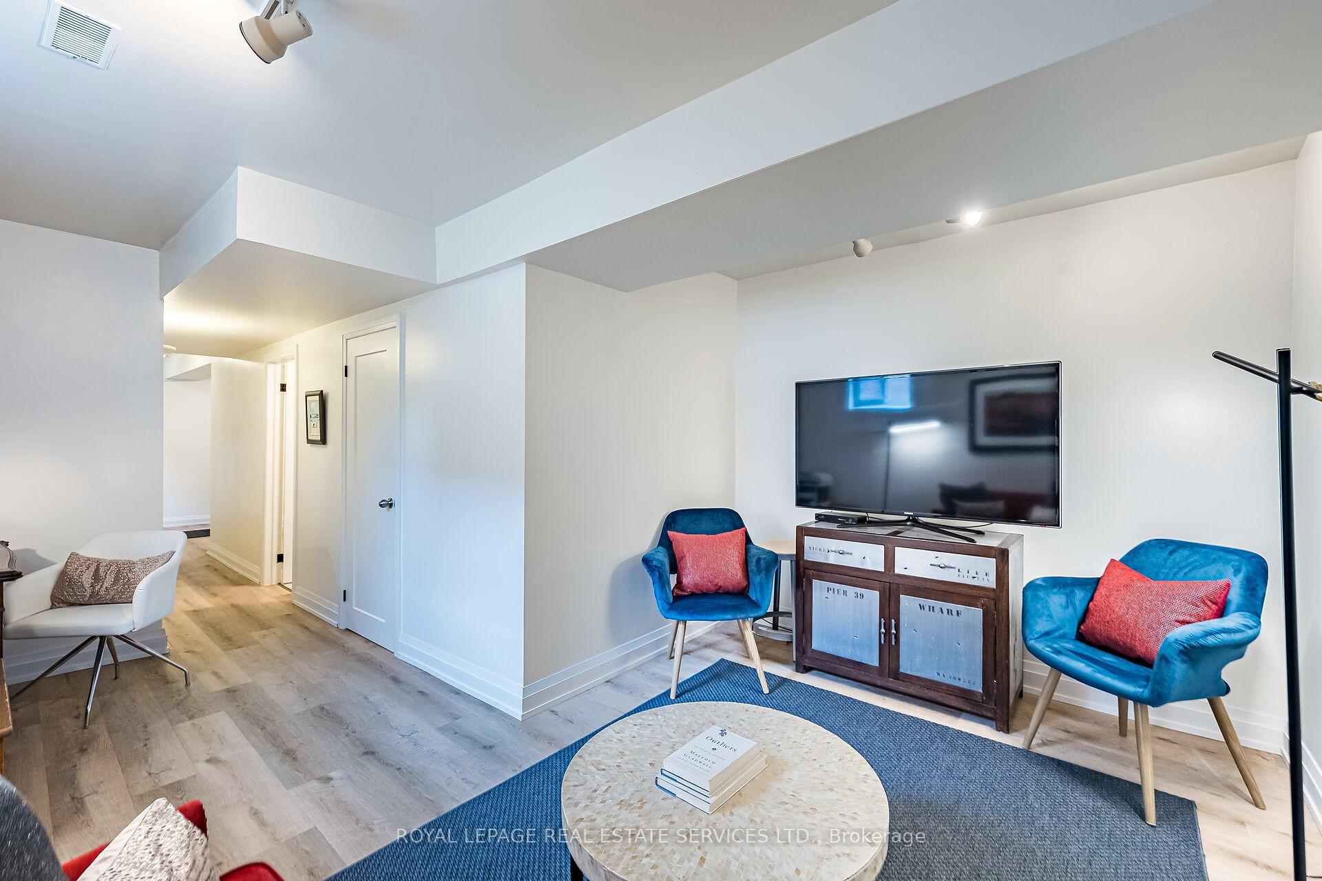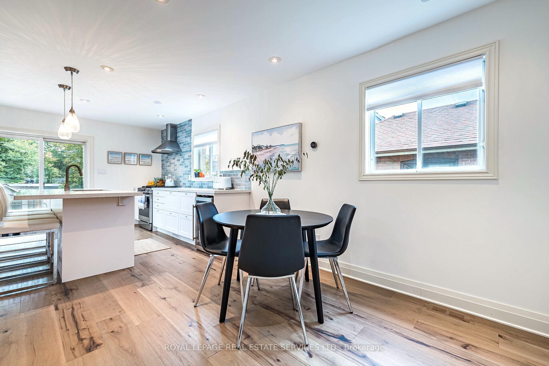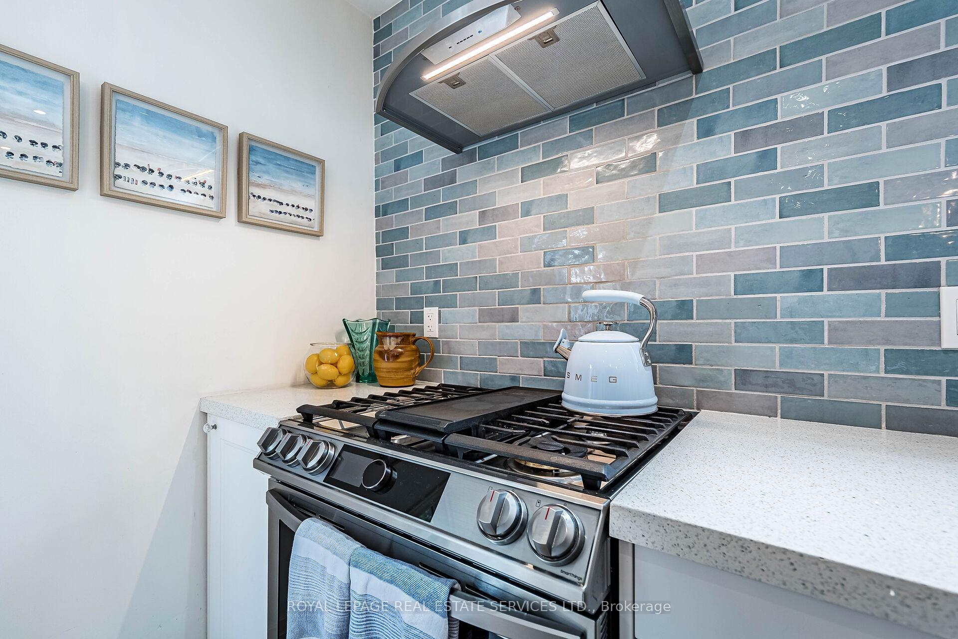 Just steps to the Lake - this simply delightful, recently renovated home offers turn-key living, stylish updates & modern decor! This captivating, 3-bedroom, 2-bathroom home is literally a stone's throw from the Lake; it is the 1st house from Lake Shore Dr, the Waterfront Trail, and lakeside Cliff Lumsden Park with spectacular sunrises and panoramic views of Toronto's skyline. Imagine the joy of walking the dog, feeding the ducks, skipping pebbles and seeing sailboats coasting by while strolling, cycling or jogging along the Waterfront Trail! The open-concept main floor was renovated in 2022 and is a bright, open-concept living space that is perfect for everyday family living and entertaining alike. The gorgeous, well-appointed chef's kitchen offers an abundance of timeless shaker-style cabinets, loads of counter space, a large island complete with a wine fridge and a walk-out to a sunny, west-facing backyard with an impressive, 2-level deck and Jacuzzi hot tub. It is a perfect place for BBQing with family and friends! The 2nd floor is freshly painted in Cloud White by Benjamin Moore and enjoys 3 comfortable bedrooms, including a 'King-sized' primary bedroom with wall-to-wall closets. The exquisite 5-piece bathroom offers a separate bathtub, shower and double sinks. The lower level was refreshed in 2024 and enjoys a fitness area with laundry closet, a cozy rec room, a home office nook, a 4-piece bath, a utility room and storage. Best of all, the basement has soaring 8-foot ceilings. Additional updates also include front yard hardscaping with inlaid pavers ('24); resurfaced private driveway ('22), re-shingled roof ('20), new front porch & a refreshed 2-tiered back deck. Steps to schools, pools, shopping & public transit. And, it's just a short commute downtown. Dreaming of living near the lake? Dream no longer! Now you too can enjoy the excitement of Life-by-the-Lake!