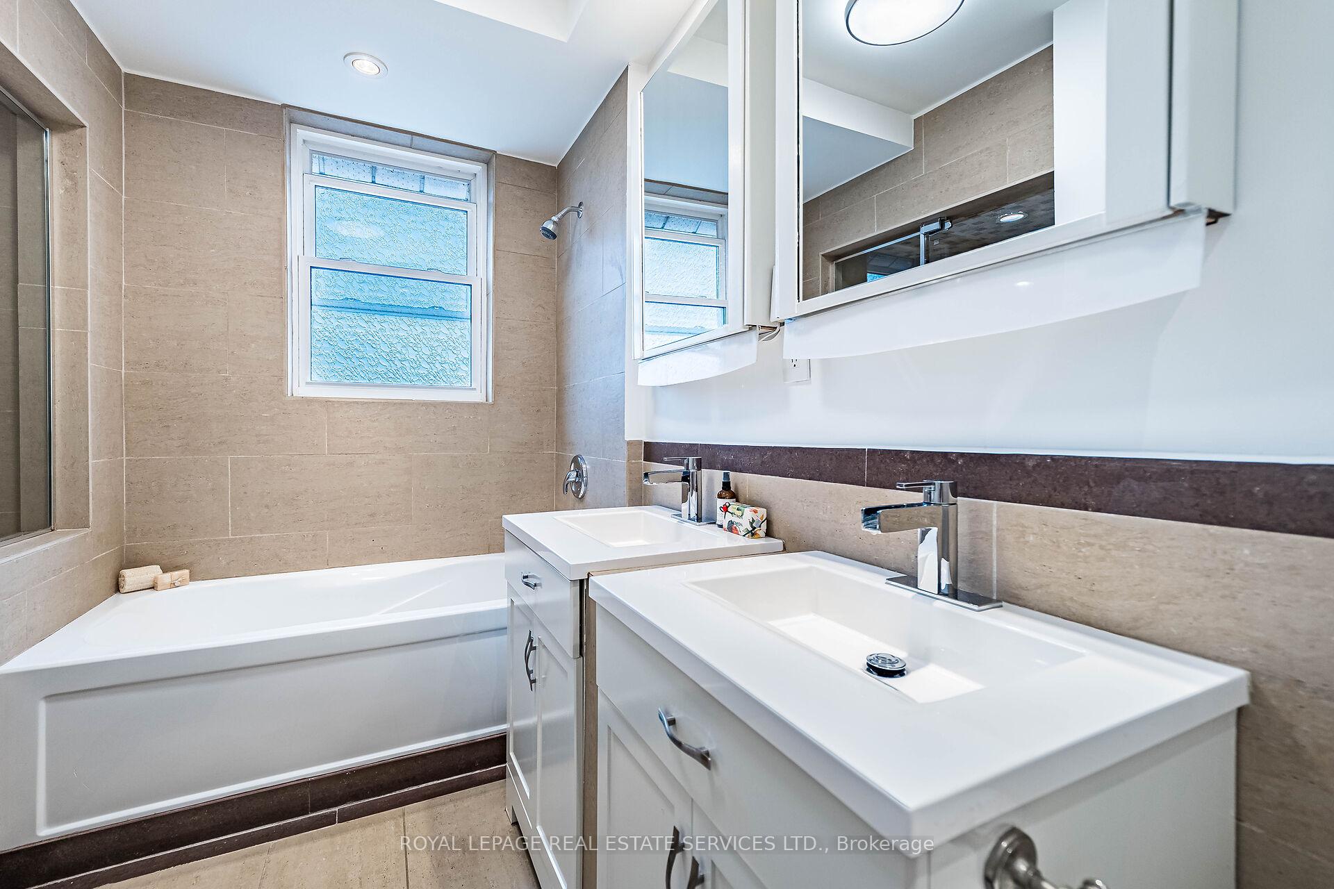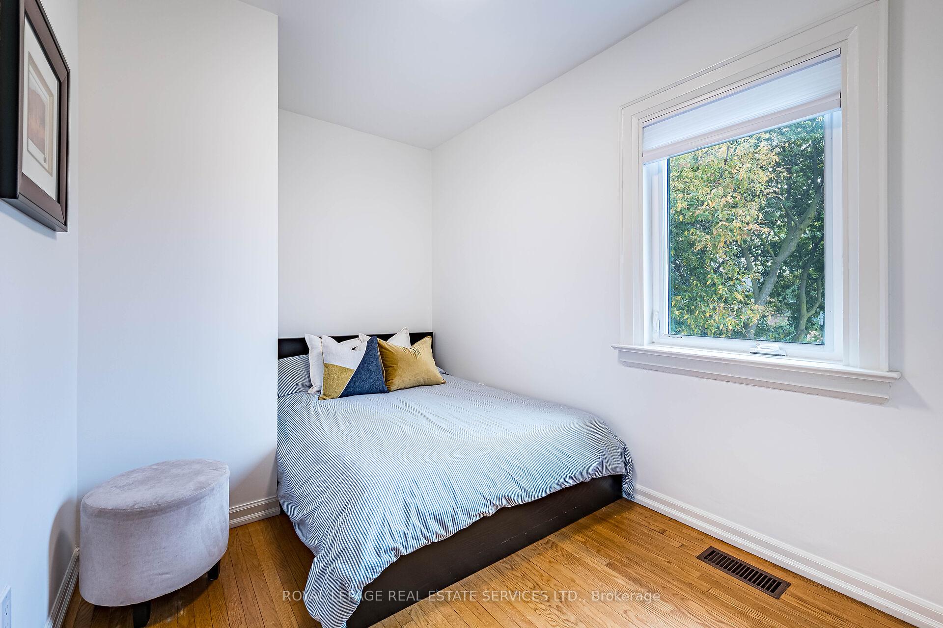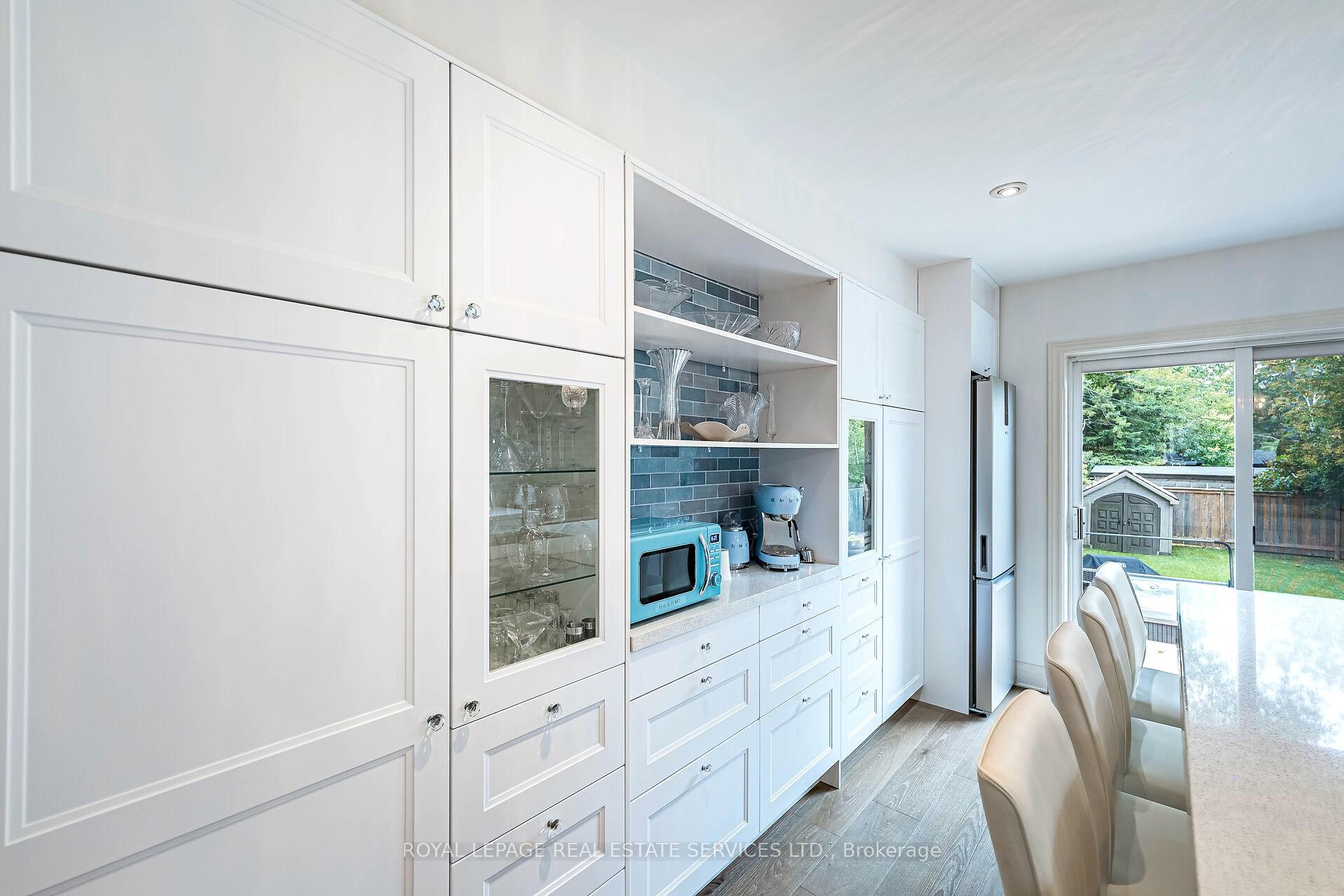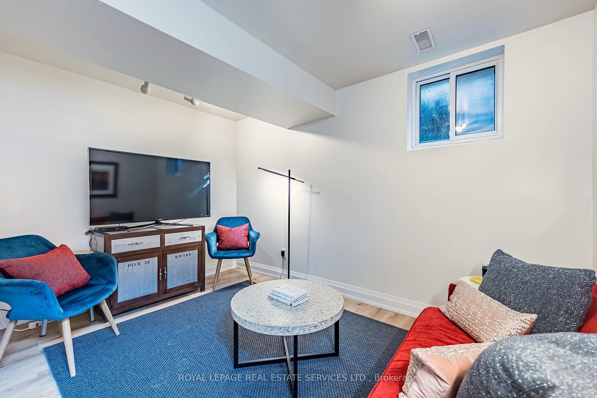 Just steps to the Lake - this simply delightful, recently renovated home offers turn-key living, stylish updates & modern decor! This captivating, 3-bedroom, 2-bathroom home is literally a stone's throw from the Lake; it is the 1st house from Lake Shore Dr, the Waterfront Trail, and lakeside Cliff Lumsden Park with spectacular sunrises and panoramic views of Toronto's skyline. Imagine the joy of walking the dog, feeding the ducks, skipping pebbles and seeing sailboats coasting by while strolling, cycling or jogging along the Waterfront Trail! The open-concept main floor was renovated in 2022 and is a bright, open-concept living space that is perfect for everyday family living and entertaining alike. The gorgeous, well-appointed chef's kitchen offers an abundance of timeless shaker-style cabinets, loads of counter space, a large island complete with a wine fridge and a walk-out to a sunny, west-facing backyard with an impressive, 2-level deck and Jacuzzi hot tub. It is a perfect place for BBQing with family and friends! The 2nd floor is freshly painted in Cloud White by Benjamin Moore and enjoys 3 comfortable bedrooms, including a 'King-sized' primary bedroom with wall-to-wall closets. The exquisite 5-piece bathroom offers a separate bathtub, shower and double sinks. The lower level was refreshed in 2024 and enjoys a fitness area with laundry closet, a cozy rec room, a home office nook, a 4-piece bath, a utility room and storage. Best of all, the basement has soaring 8-foot ceilings. Additional updates also include front yard hardscaping with inlaid pavers ('24); resurfaced private driveway ('22), re-shingled roof ('20), new front porch & a refreshed 2-tiered back deck. Steps to schools, pools, shopping & public transit. And, it's just a short commute downtown. Dreaming of living near the lake? Dream no longer! Now you too can enjoy the excitement of Life-by-the-Lake!