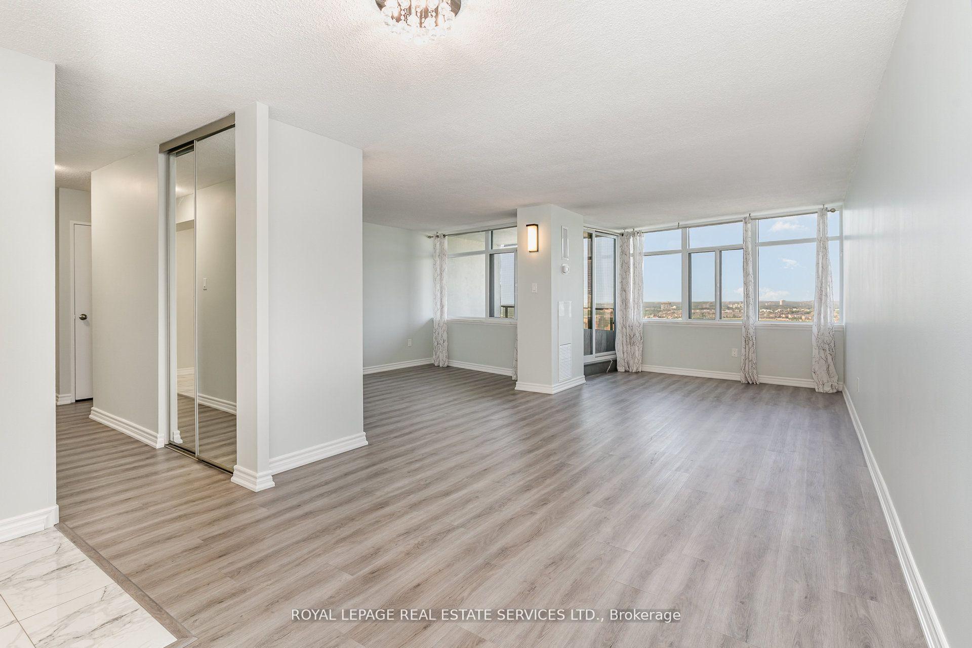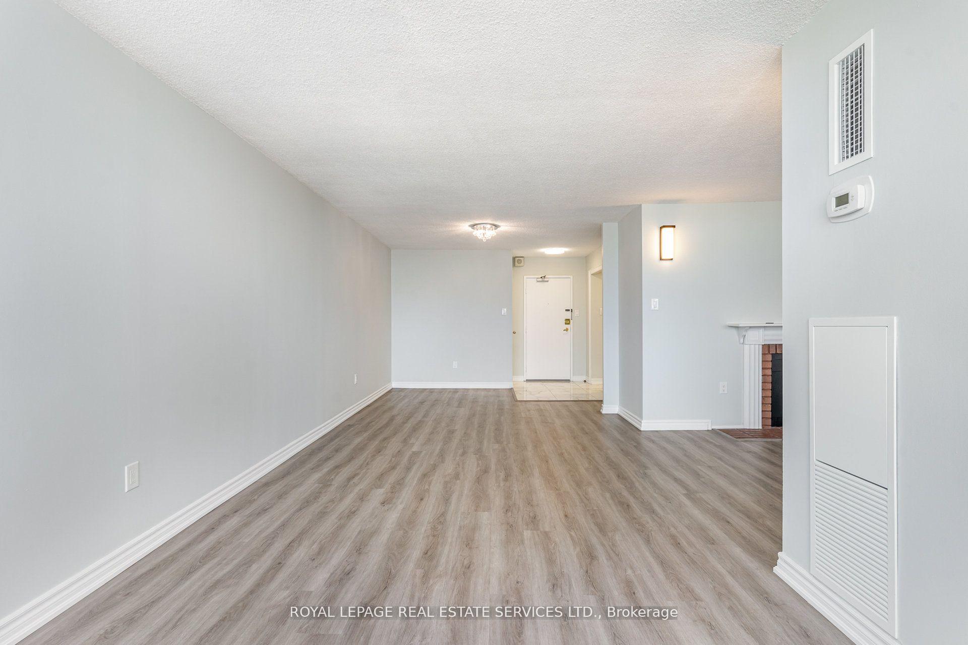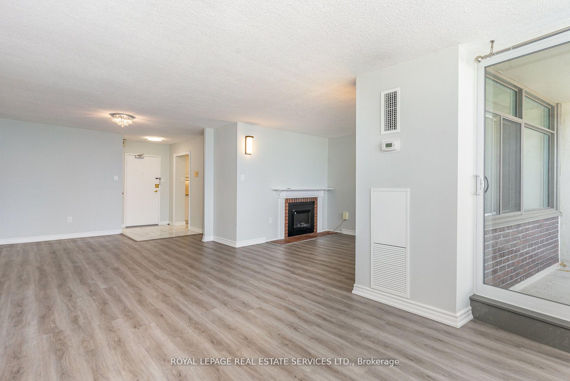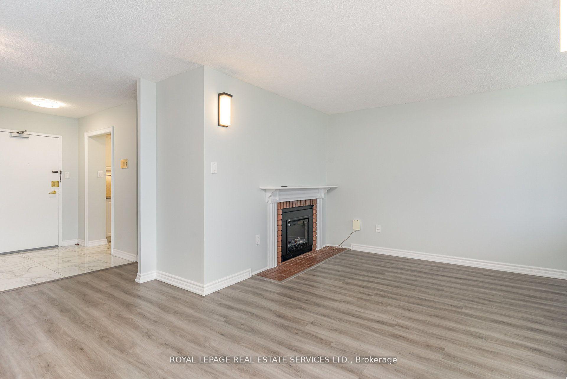 This remarkable sub penthouse unit is freshly painted, has been recently fully renovated, including new blinds in 2024, 2 HVAC units installed in 2023 with 5 yr warranty, offering a truly turn-key living experience. It features a spacious layout with two bedrooms plus a versatile den, and two full, beautifully renovated bathrooms. This highly desirable unit is situated in a well-managed building that rests on over four acres of meticulously maintained parkland, providing a serene and picturesque environment. The location offers unparalleled convenience, being within comfortable walking distance of both the Cooksville GO Station and Mississauga Transit, making commuting a breeze. Furthermore, it's just a short distance from major amenities like Square One Mall and the Trillium Queensway Hospital, ensuring everything you need is close at hand. Boasting almost 1200 square feet of meticulously renovated living space, this unit offers truly amazing panoramic views that can be enjoyed from various vantage points. The master bedroom is designed as a private retreat, complete with a generous walk-in closet and a four-piece ensuite bathroom. The open-concept den features an elegant electric fireplace, adding a cozy and inviting touch. You'll also appreciate the open balcony, which provides an unobstructed view-perfect for enjoying breathtaking sunsets. In addition to its stunning interiors and views, this sub-penthouse comes with a large in-suite storage room, offering ample space for your belongings. A rare and highly sought-after feature is the two parking spaces (one of them extra large), capable of accommodating two cars comfortably. Significant renovations have recently enhanced the building, including updates to the balconies, windows & balcony doors (2024/2025), entry fob system, and elevators and more. The low maintenance fee is comprehensive, covering all utilities, even cable TV and internet.