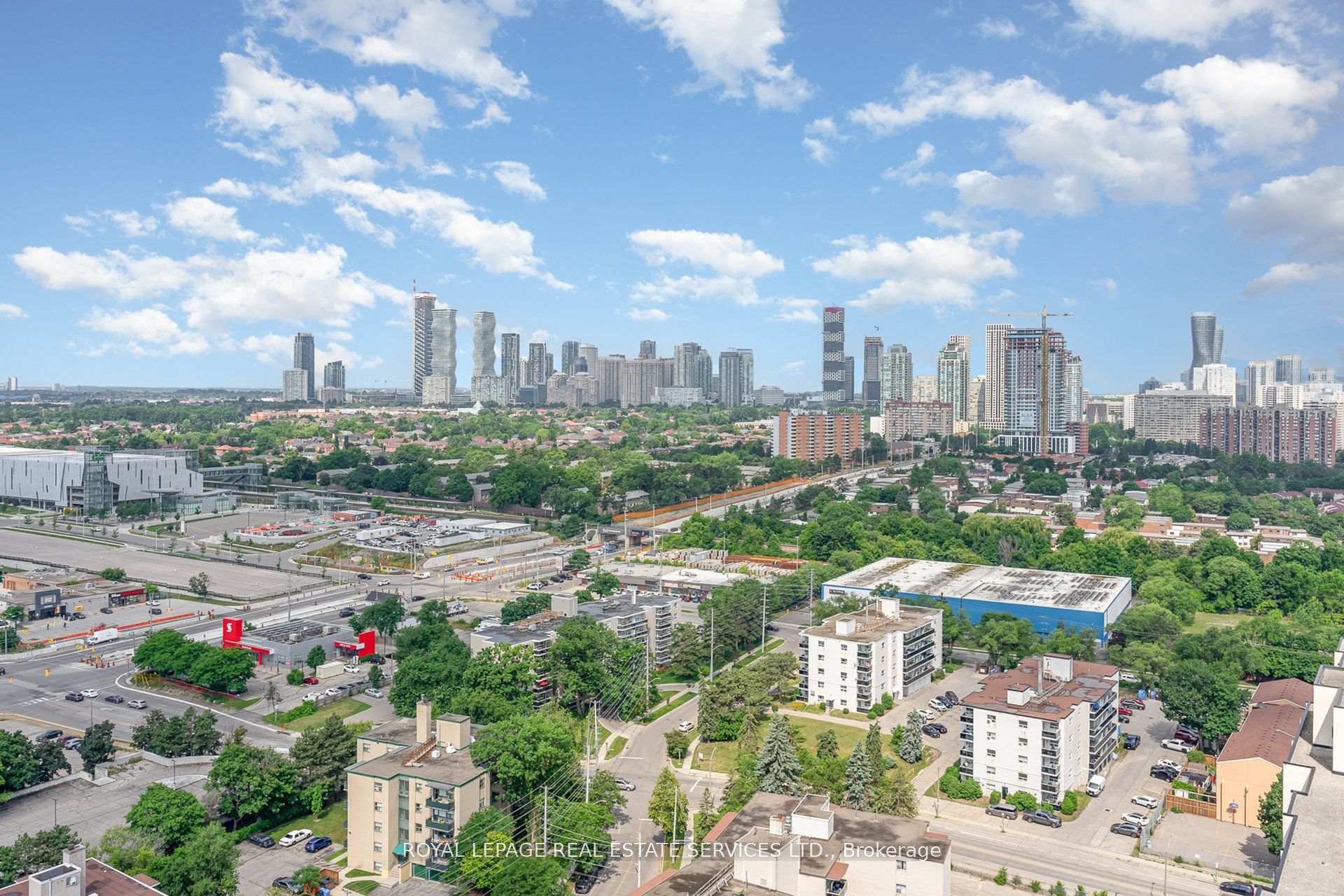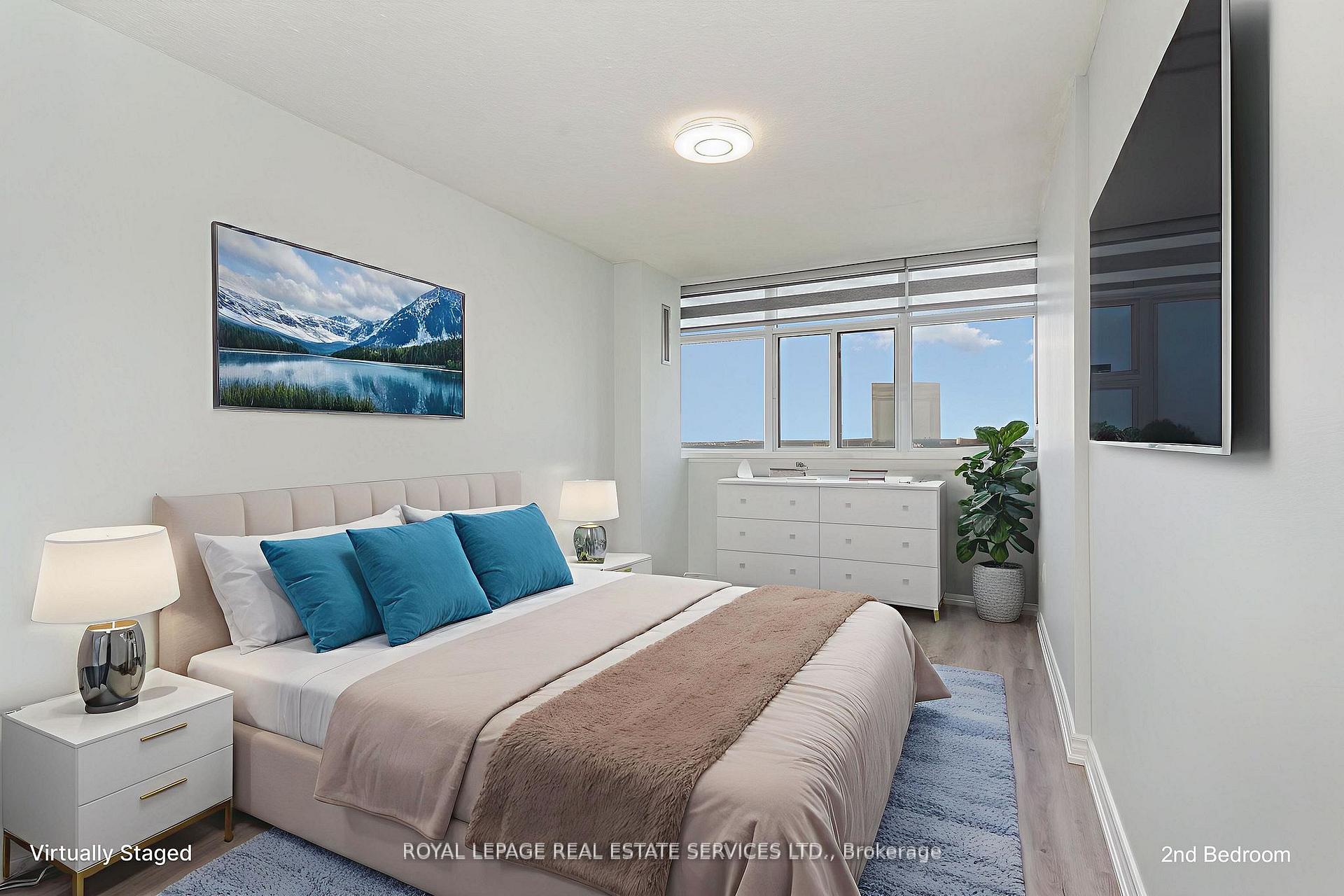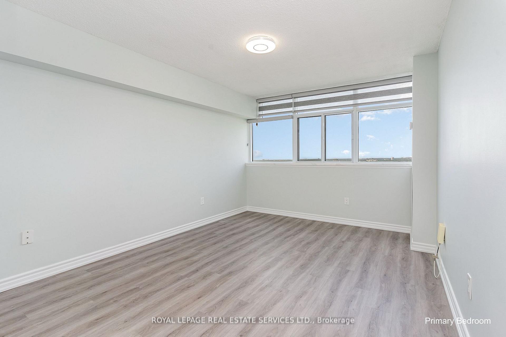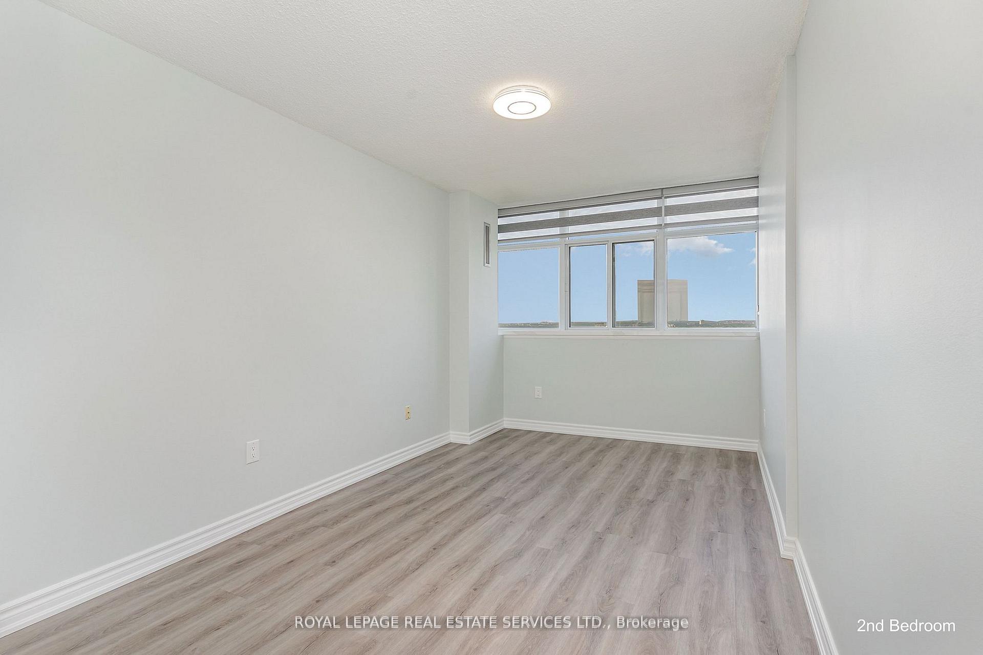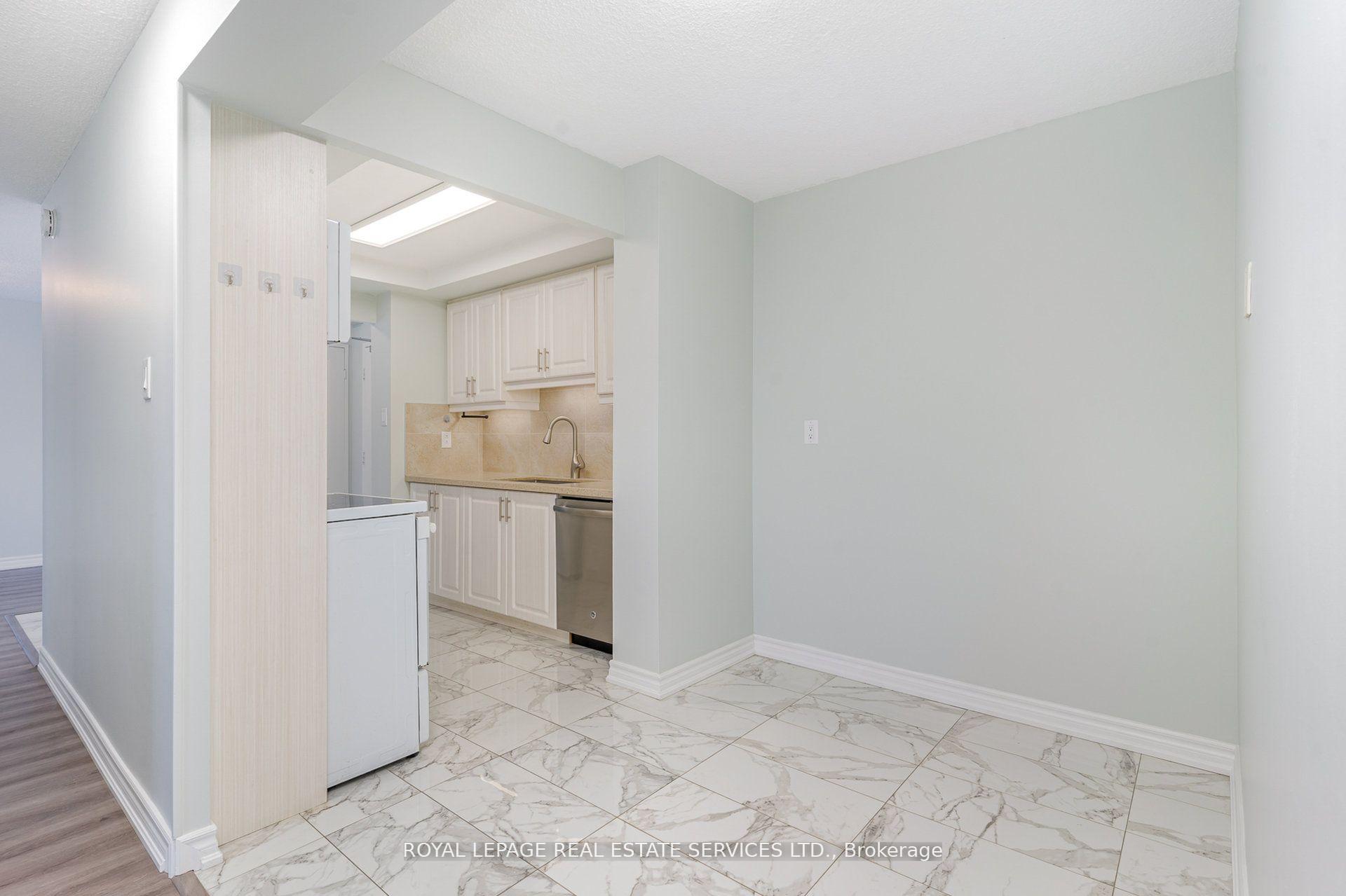 This remarkable sub penthouse unit is freshly painted, has been recently fully renovated, including new blinds in 2024, 2 HVAC units installed in 2023 with 5 yr warranty, offering a truly turn-key living experience. It features a spacious layout with two bedrooms plus a versatile den, and two full, beautifully renovated bathrooms. This highly desirable unit is situated in a well-managed building that rests on over four acres of meticulously maintained parkland, providing a serene and picturesque environment. The location offers unparalleled convenience, being within comfortable walking distance of both the Cooksville GO Station and Mississauga Transit, making commuting a breeze. Furthermore, it's just a short distance from major amenities like Square One Mall and the Trillium Queensway Hospital, ensuring everything you need is close at hand. Boasting almost 1200 square feet of meticulously renovated living space, this unit offers truly amazing panoramic views that can be enjoyed from various vantage points. The master bedroom is designed as a private retreat, complete with a generous walk-in closet and a four-piece ensuite bathroom. The open-concept den features an elegant electric fireplace, adding a cozy and inviting touch. You'll also appreciate the open balcony, which provides an unobstructed view-perfect for enjoying breathtaking sunsets. In addition to its stunning interiors and views, this sub-penthouse comes with a large in-suite storage room, offering ample space for your belongings. A rare and highly sought-after feature is the two parking spaces (one of them extra large), capable of accommodating two cars comfortably. Significant renovations have recently enhanced the building, including updates to the balconies, windows & balcony doors (2024/2025), entry fob system, and elevators and more. The low maintenance fee is comprehensive, covering all utilities, even cable TV and internet.