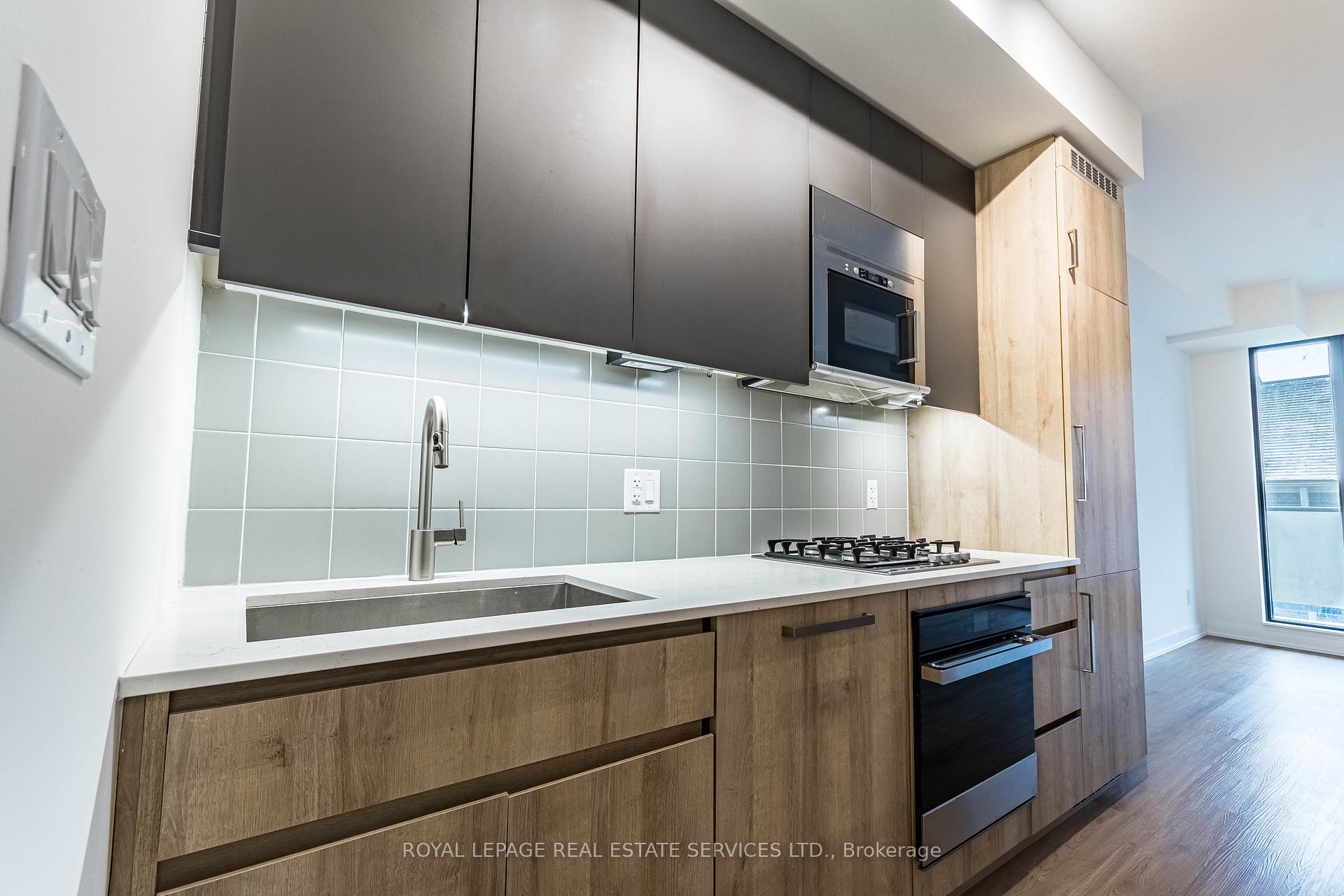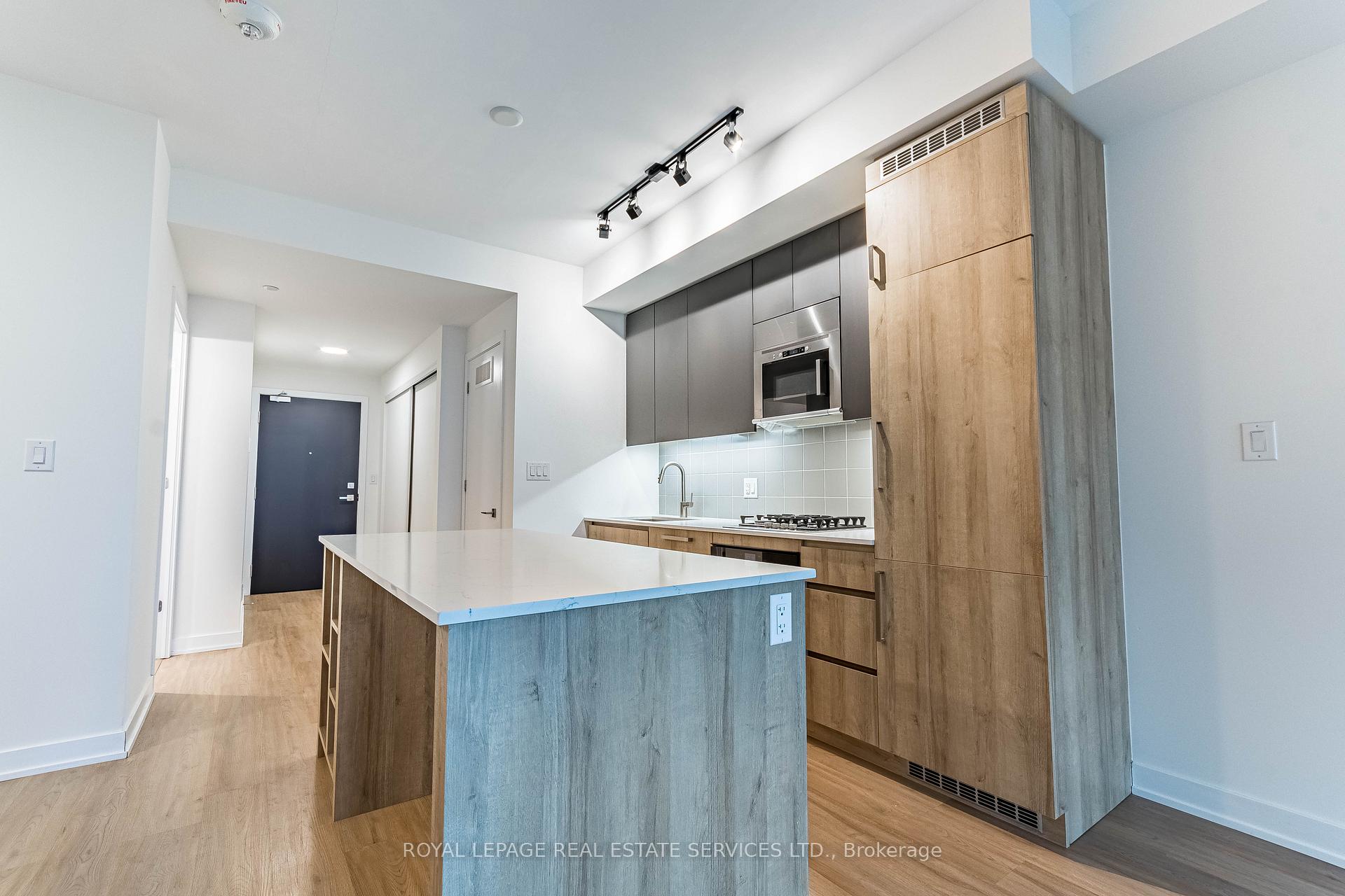This modern suite in the luxurious The Roncy offers a thoughtfully designed layout with upscale finishes throughout. Enjoy a spacious open living area with a walk-out to the expansive balcony, a sleek kitchen featuring stone countertops and a center island, 1 bedroom plus den, a full washroom, an ensuite laundry, and a locker space for added convenience. Ideally located in the heart of Roncesvalles, boasting an almost perfect Walk Score of 98/100, placing you steps from trendy boutiques, lush parks, and seamless transit options. High-class building amenities include a state-of-the-art gym, a stylish party room, and visitor parking. Perfect for professionals and couples seeking the ultimate urban lifestyle in one of Toronto's most vibrant and sought-after neighbourhoods!