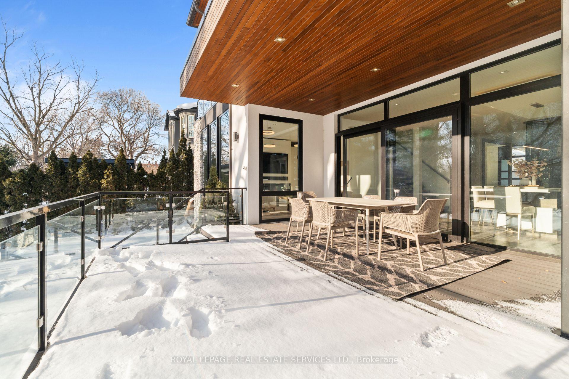 Stunning modern-contemporary custom residence in the heart of The Kingsway, offering an exceptional combination of design, scale, and location. Situated on a rare 54 x 199 ft ravine lot backing onto Tom Riley Park, this home provides a private and tranquil setting surrounded by mature greenery, while remaining just steps from transit, top-rated schools, and the vibrant shops and restaurants along Bloor Street. Spanning approximately 5, 200 sqft of total living space, this 4+2 bedroom, 5 bathroom home showcases innovative architecture, premium finishes, and a highly functional layout across all levels. The main floor is anchored by a contemporary chefs kitchen with Caesarstone countertops and backsplash, Jenn-Air, Bosch, and Wolf appliances, a built-in coffee station, and custom wine display, seamlessly flowing into open concept living and dining spaces. Expansive glass doors connect to a covered 340 sqft patio with fireplace, perfect for year round entertaining. Upstairs, a skylit hallway leads to generously sized bedrooms, spa-like baths, and a 326 sqft upper terrace with ravine views, while the lower level offers a dedicated wine cellar, recreation room with fireplace, and state-of-the-art home theatre with 98" 4K screen and custom sound system. Additional highlights include multiple gas fireplaces (indoor and outdoor), heated basement floors, engineered hardwood throughout, illuminated stair features, dual laundry rooms, smart-home automation, and a private backyard oasis designed for relaxation. Rarely does a property of this calibre become available in such a prestigious and family-friendly neighbourhood.