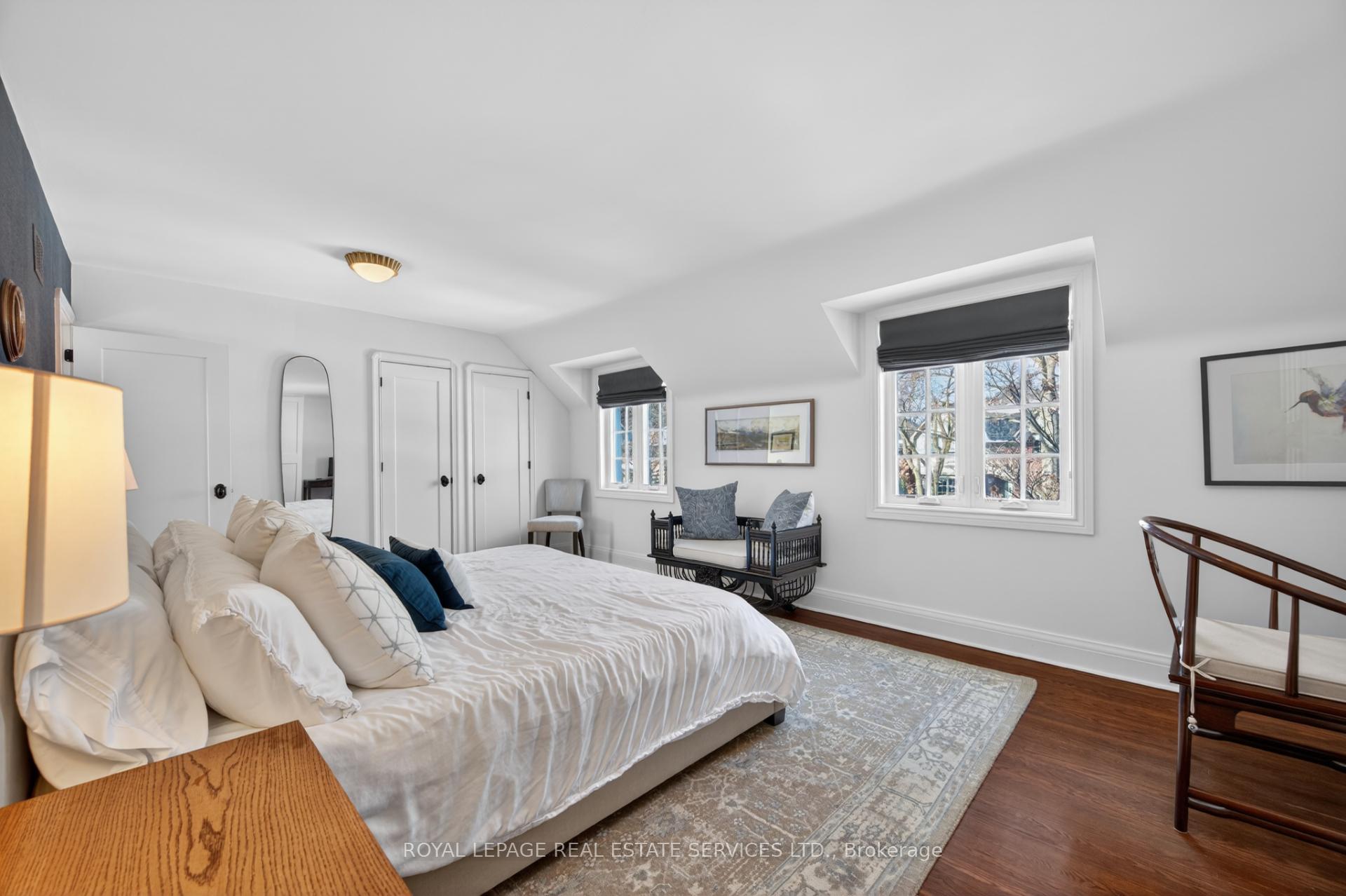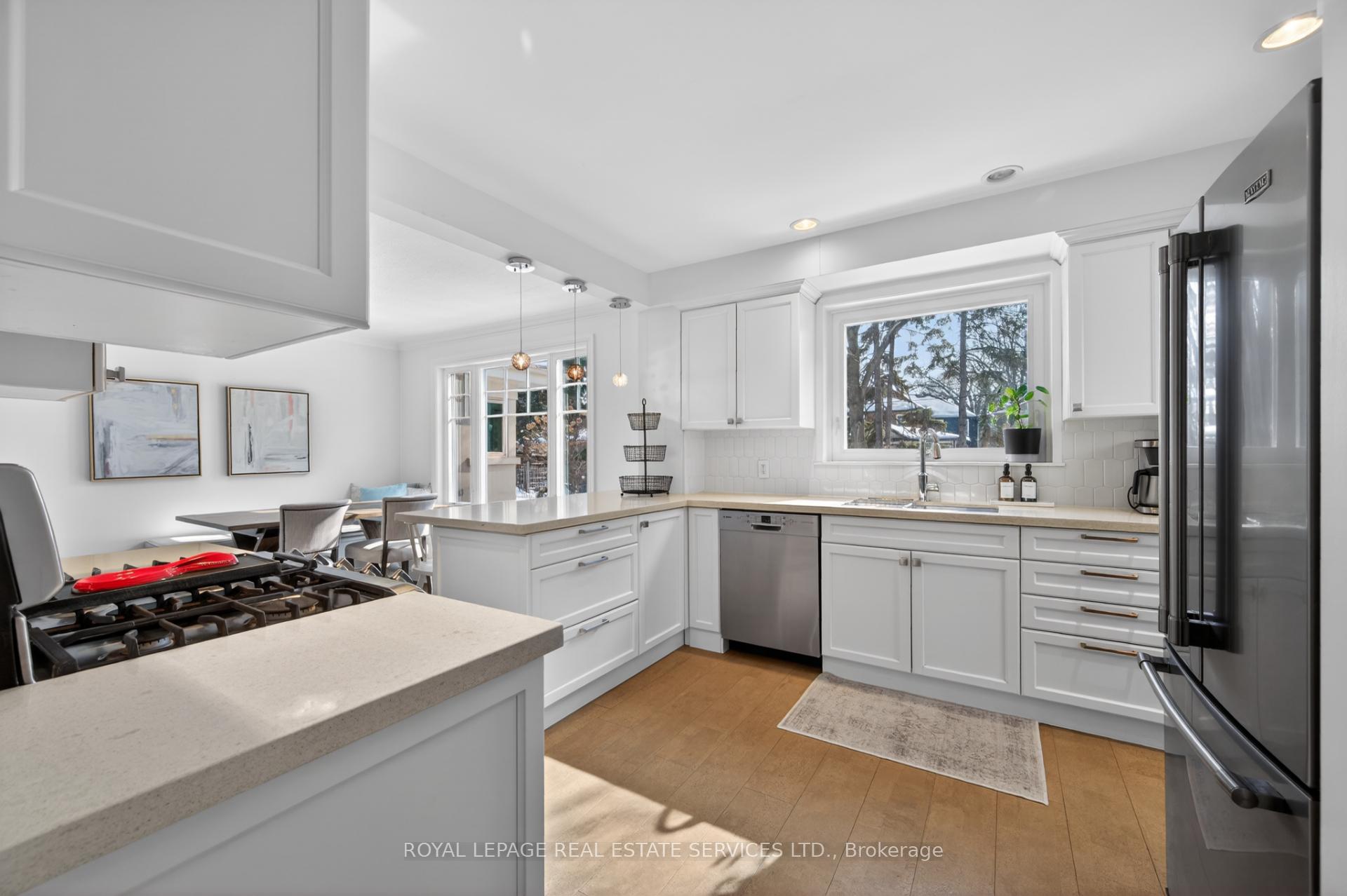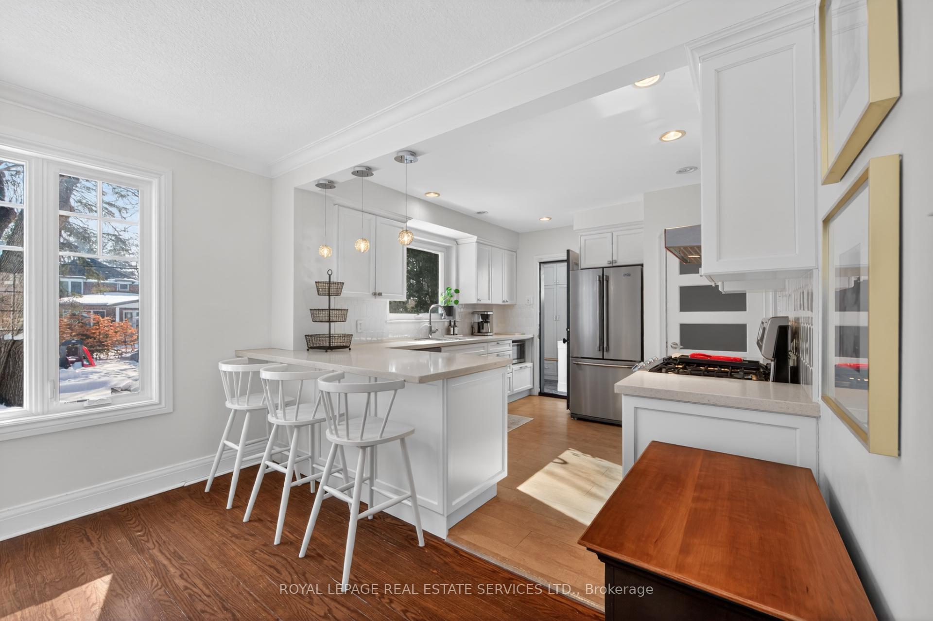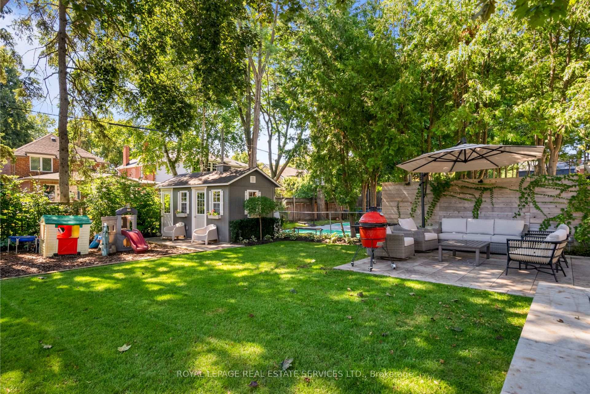 Prime Sunnylea! Welcome to this beautifully updated and thoughtfully enhanced family home, set on a rare and coveted 40 x 130 ft lot along a quiet, tree-lined street. Offering outstanding curb appeal and exceptional privacy with mature greenery at the rear, this property blends timeless charm with modern comfort. The main floor features a spacious living room, renovated kitchen with stainless steel appliances & breakfast bar. The inviting dining room showcases a custom built-in bench, perfect for family gatherings. Spacious bedrooms and a renovated upstairs 4pc family bath provide comfort and style, while hardwood flooring flows throughout. The fully renovated lower level offers a warm and functional retreat with gas fireplace, 3pc bath with heated floors, and dedicated laundry/furnace/ storage room - ideal for extended living or entertaining. Extensive upgrades include new windows, roof, siding, electrical panel, furnace, and air conditioning. The insulated garage has been converted into a gym, and a newly added mudroom with heated floors, custom cabinetry, and heat pump adds everyday convenience. The professionally landscaped backyard is a true oasis, featuring a new deck, stone patio, automated irrigation system, outdoor lighting, expanded shed with electricity, generator pad, new fencing, and multiple outdoor living zones - perfect for relaxing and entertaining. Additional highlights include updated doors throughout, a redesigned primary bedroom with feature wall and custom built-ins, new washer and refrigerator, and meticulous attention to detail inside and out. A rare opportunity to own a move-in-ready home in one of Sunnylea's most sought-after neighbourhoods - steps to top schools, parks, transit, and Bloor Street amenities.