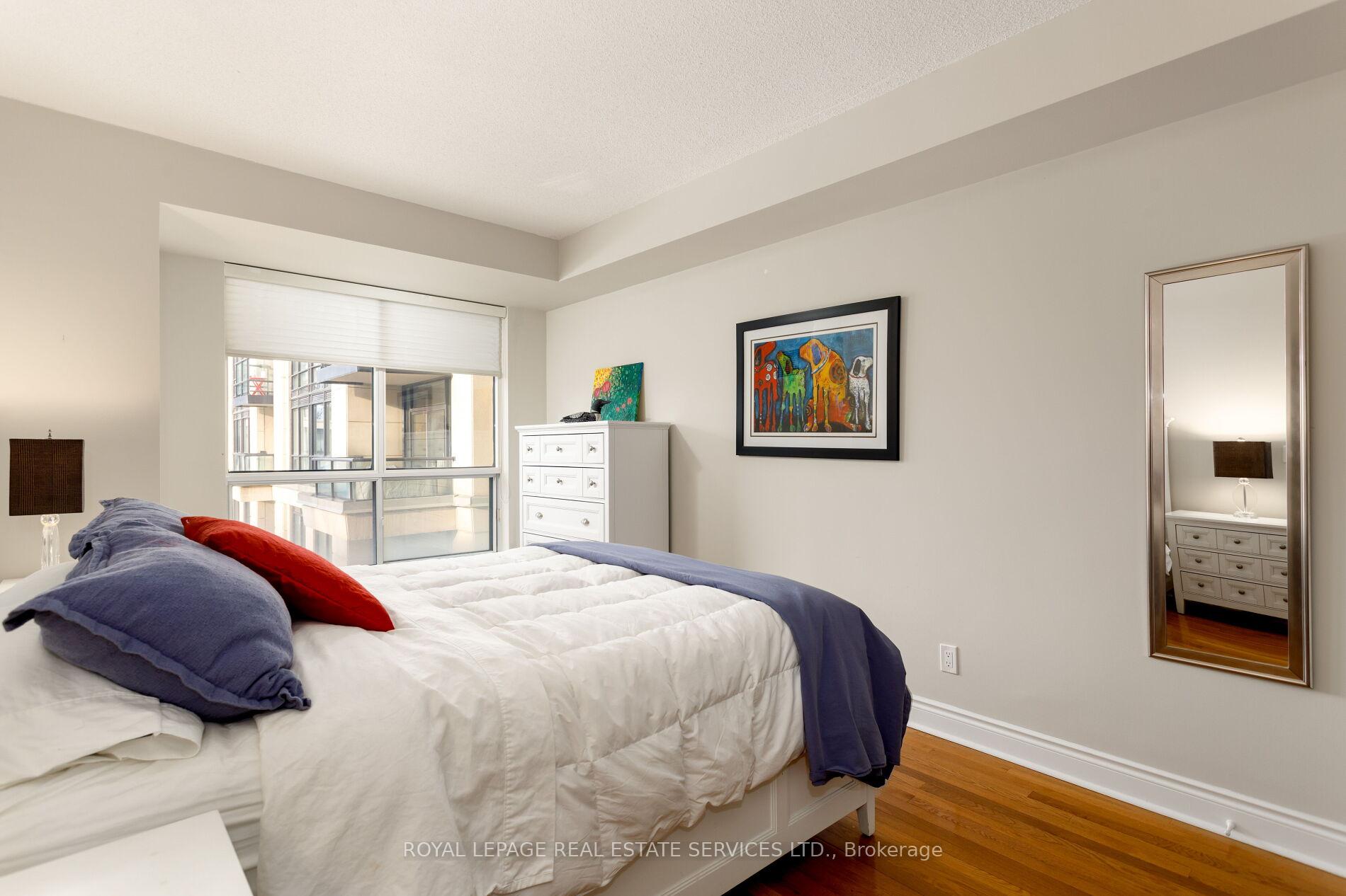 Fabulous mid-town location at The St. Clair. This bright and spacious 2-bedroom, 2-bathroom suite offers a desirable split floor plan with separate living and dining areas-ideal for both everyday living and entertaining. A private balcony overlooking the serene courtyard provides a peaceful spot for morning coffee or unwinding at the end of the day. The open kitchen features a breakfast bar, stainless steel appliances, undermount lighting, a newly updated countertop, and mirrored backsplash. Both bathrooms have been beautifully renovated, and the suite has been thoughtfully upgraded with new hardwood floors, a new washer and dryer, and a new heat pump for added comfort and efficiency. The primary bedroom includes a 4-piece ensuite and double closet. Steps to the subway, shops, and restaurants, this well-managed building offers excellent amenities including a 24-hour concierge, exercise room, billiards room, library, and party room. Includes 1 parking space and 1 locker.