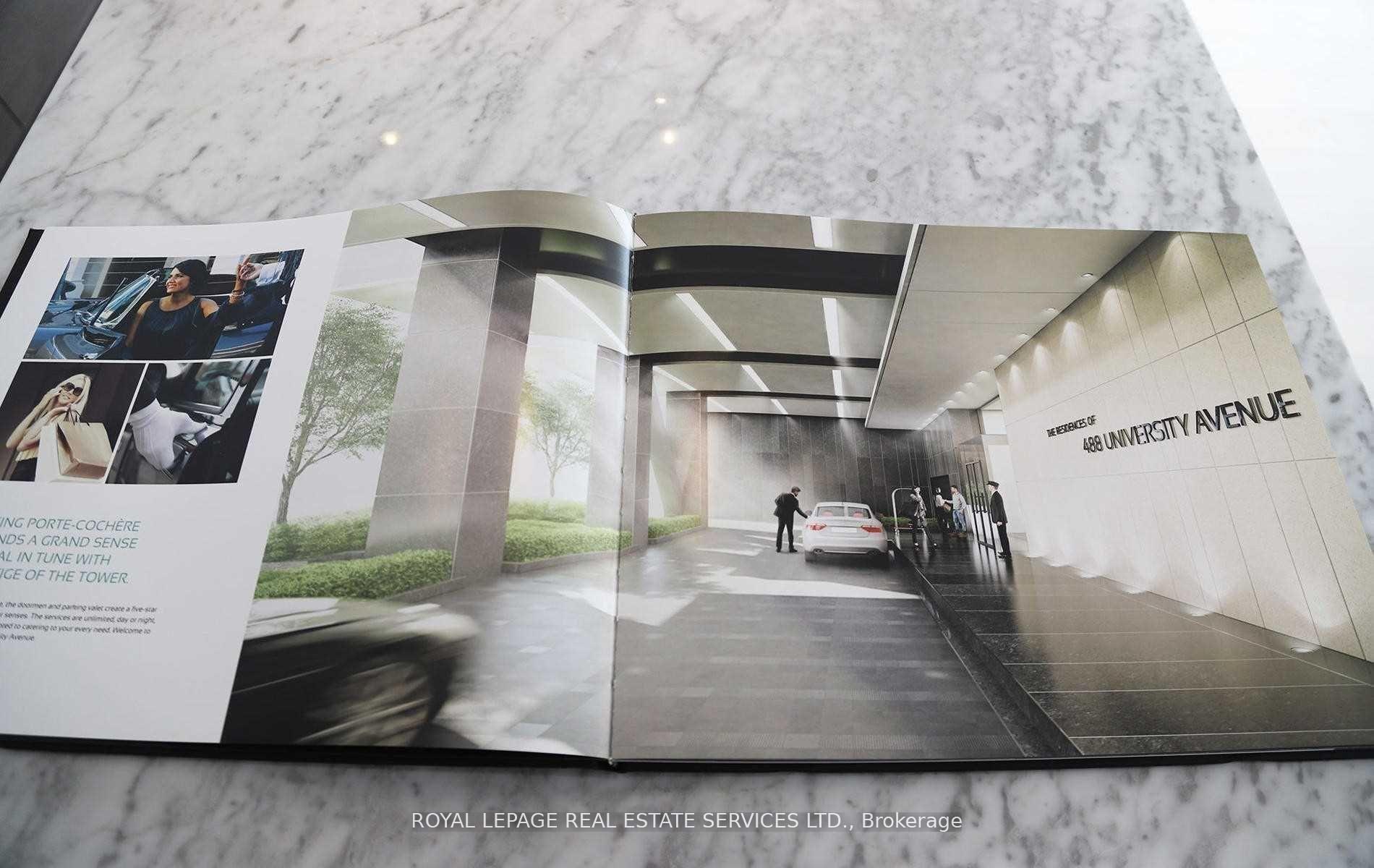 Seven Years New. The Residences of 488 University Avenue takes the quality of downtown living to new heights, offering a level of service and lifestyle amenities found only in the world's finest hotels and residences. From the dramatic SkyLobby to the lifestyle amenities of the SkyClub on 18th&19th floors to Valet Parking, concierge. # 2910 offers a Spectacular Flow-Through floor plan designed to capture the maximum effect of Naturally Lit Space and Beautiful Views with the 9 ft Floor-to-Ceilings + Windows Walls.This Upgraded SW Corner offers 2 Bedrooms + Large Den and includes 2 Full Bathrooms.This suite is 1075 Square Feet in size with an Oversized 165 Sq ft Balcony. In addition to the purchase price & $30, 000+ spent in upgrades in 2020 (see attached list) the Sellers paid $62, 000 for the "Right to Park their Vehicle" which is a convenient 24 hour In & Out Valet Service that can be transferred to the Buyer, for one (1) Registered Vehicle (see attached info regarding:Parking) with a One Time Registration Fee ($240) to register one vehicle as long as you park the same vehicle and + other fees outlined in the attachment.This suite offers a Luxurious, Spacious, Open Concept Plan with Modern Kitchen, Top-of-the-Line AEG Appliances , B/I Wine Fridge, Liebherr Fridge-Freezer, B/I electric ceran cook top, 2 ovens, Stacked (White) Washer & Dryer. 24 Hour Concierge. Indoor Pool, Fitness Centre, Roof Top Deck , NON-Smoking Building. Direct Access on Ground Floor of Building to St. Patrick (Dundas) Subway and a Cafe Bistro located in the north-east corner of the main building entrance. 488 University is walking distance to the best of Toronto Hospitals, (University Health Networks's Toronto General Hospital on 02/25/26 ranked # 2 in the world in Newsweek Magazine's World's Best Hospitals 2026), Restaurants, Eaton Centre, Bay Street Financial District, the Court House, Osgoode Hall, Four Seasons Centre of Performing Arts, AGO, Chinatown, ROM, Yorkville and so much more to explore.