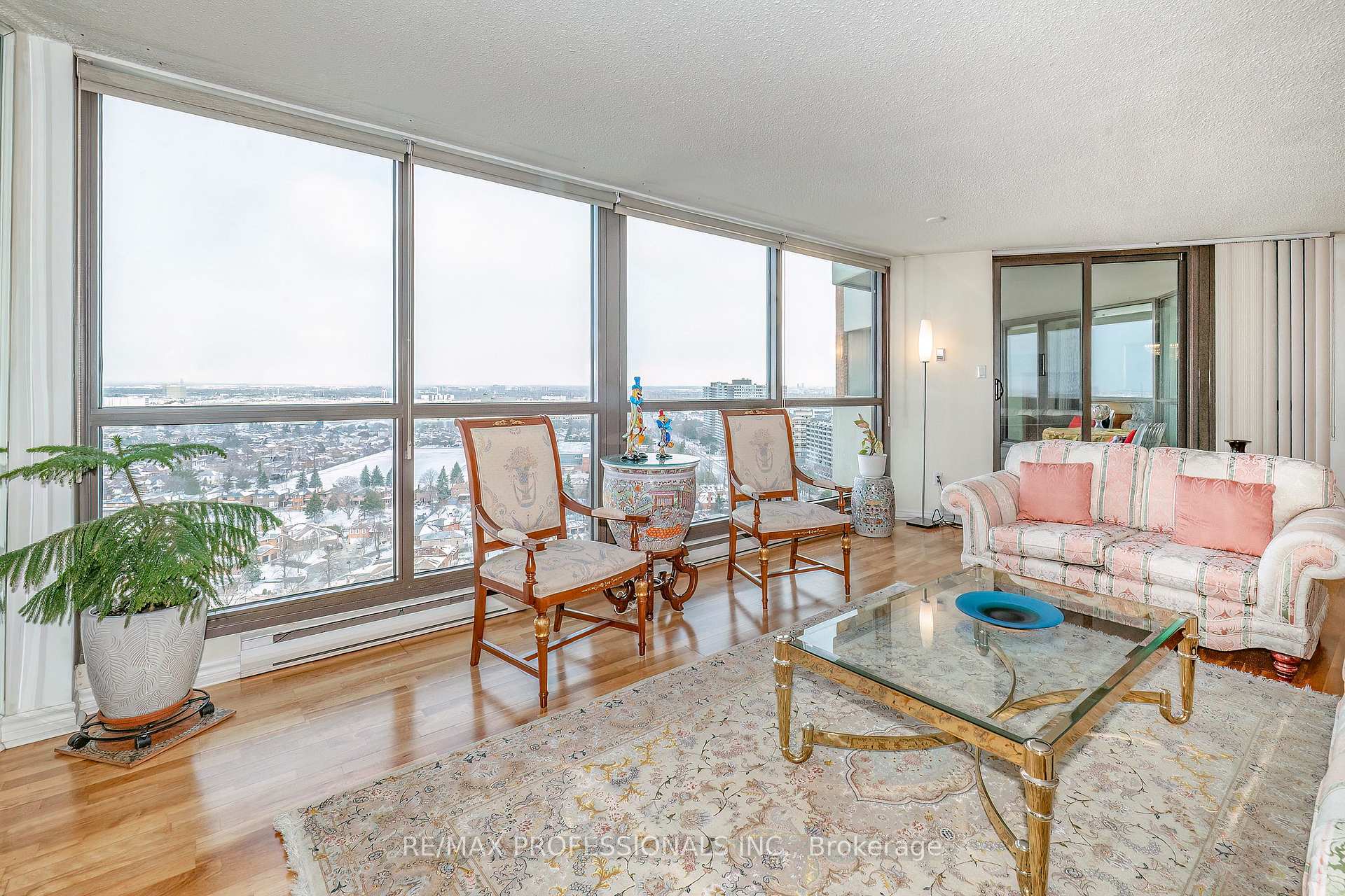 Welcome to Suite 2302 in a sought-after Tridel residence, set on expansive, beautifully landscaped grounds with 24-hour concierge and security. With only a handful of suites per floor, this building offers a more private and peaceful living experience. Spanning approximately 1, 862 sq ft, this bright and spacious suite features a well-designed open-concept layout that's ideal for both everyday living and entertaining. A large private balcony extends your living space outdoors. The two generously sized bedrooms offer comfort and privacy, including a primary suite with a walk-in closet and its own 4pc ensuite. A versatile den provides the perfect space for a home office or guest accommodations. Enjoy the convenience of ample in-suite storage, two underground parking spaces, and a locker. Maintenance fees cover all utilities-including heat, hydro, water, internet, and cable-making for truly effortless living. Residents have access to an impressive selection of amenities, both indoors and out. The grounds feature a resort-style outdoor pool, tennis and pickleball courts, and a spacious BBQ area ideal for hosting gatherings. Inside, you'll find a saltwater pool, hot tub, sauna, fitness centre, games rooms, and multiple lounges designed for relaxation and socializing. Located in a convenient Etobicoke neighbourhood, you're just steps to shopping and transit, with quick access to major highways and Toronto Pearson Airport.