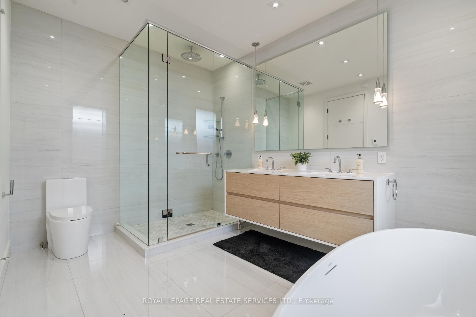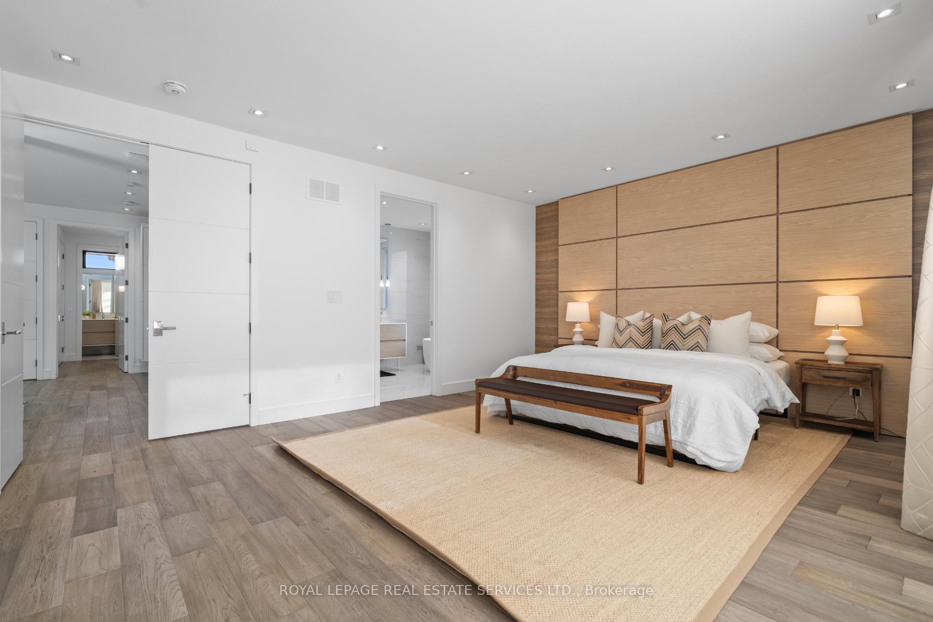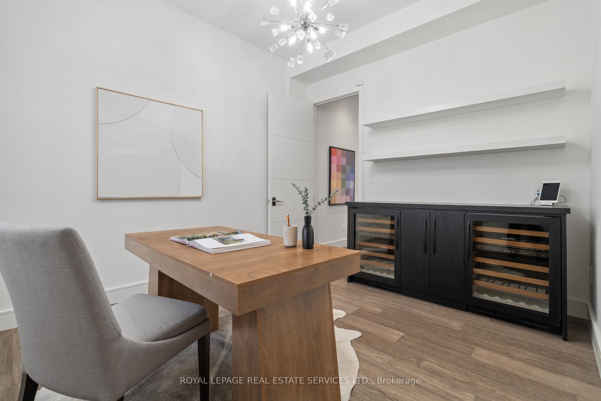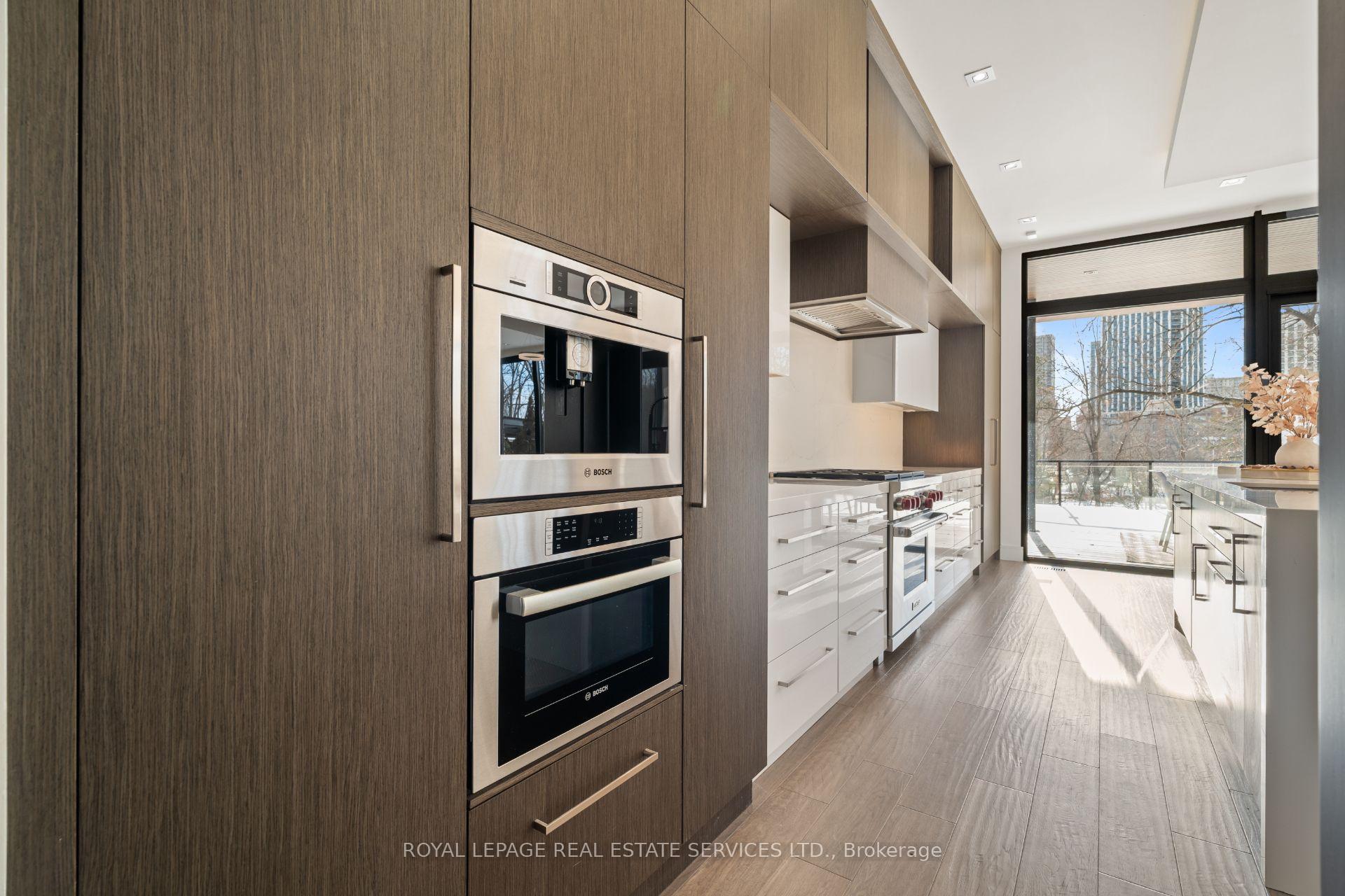 Stunning modern-contemporary custom residence in the heart of The Kingsway, offering an exceptional combination of design, scale, and location. Situated on a rare 54 x 199 ft ravine lot backing onto Tom Riley Park, this home provides a private and tranquil setting surrounded by mature greenery, while remaining just steps from transit, top-rated schools, and the vibrant shops and restaurants along Bloor Street. Spanning approximately 5, 200 sqft of total living space, this 4+2 bedroom, 5 bathroom home showcases innovative architecture, premium finishes, and a highly functional layout across all levels. The main floor is anchored by a contemporary chefs kitchen with Caesarstone countertops and backsplash, Jenn-Air, Bosch, and Wolf appliances, a built-in coffee station, and custom wine display, seamlessly flowing into open concept living and dining spaces. Expansive glass doors connect to a covered 340 sqft patio with fireplace, perfect for year round entertaining. Upstairs, a skylit hallway leads to generously sized bedrooms, spa-like baths, and a 326 sqft upper terrace with ravine views, while the lower level offers a dedicated wine cellar, recreation room with fireplace, and state-of-the-art home theatre with 98" 4K screen and custom sound system. Additional highlights include multiple gas fireplaces (indoor and outdoor), heated basement floors, engineered hardwood throughout, illuminated stair features, dual laundry rooms, smart-home automation, and a private backyard oasis designed for relaxation. Rarely does a property of this calibre become available in such a prestigious and family-friendly neighbourhood.