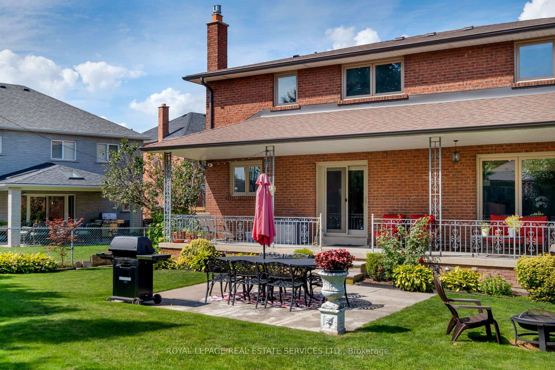 Sensational 5+1 bedroom, 4 bathroom home offering exceptional space and flexibility for family living, multigenerational living, or an in-law suite. A grand foyer with soaring ceilings, porcelain tile, and a sweeping staircase creates an elegant first impression. The main floor offers expansive formal and casual living spaces, including a sun-filled living room, dining room, and family room with wood-burning fireplace. The renovated 2024 eat-in kitchen blends timeless style and modern function, opening to a covered porch and fully fenced backyard with generous lawn and storage. Upstairs are three large bedrooms, a 4-piece bath, and a spacious primary retreat with Juliette balcony, walk-through walk-in closet, and 6-piece ensuite. The separate-entry lower level adds outstanding versatility with garage access, a large rec room with gas fireplace, full kitchen, above-grade windows, bedroom, 4-piece bath, and oversized laundry room. Well located near schools, TTC, shopping, parks, UP Express, GO, highways, and the airport.